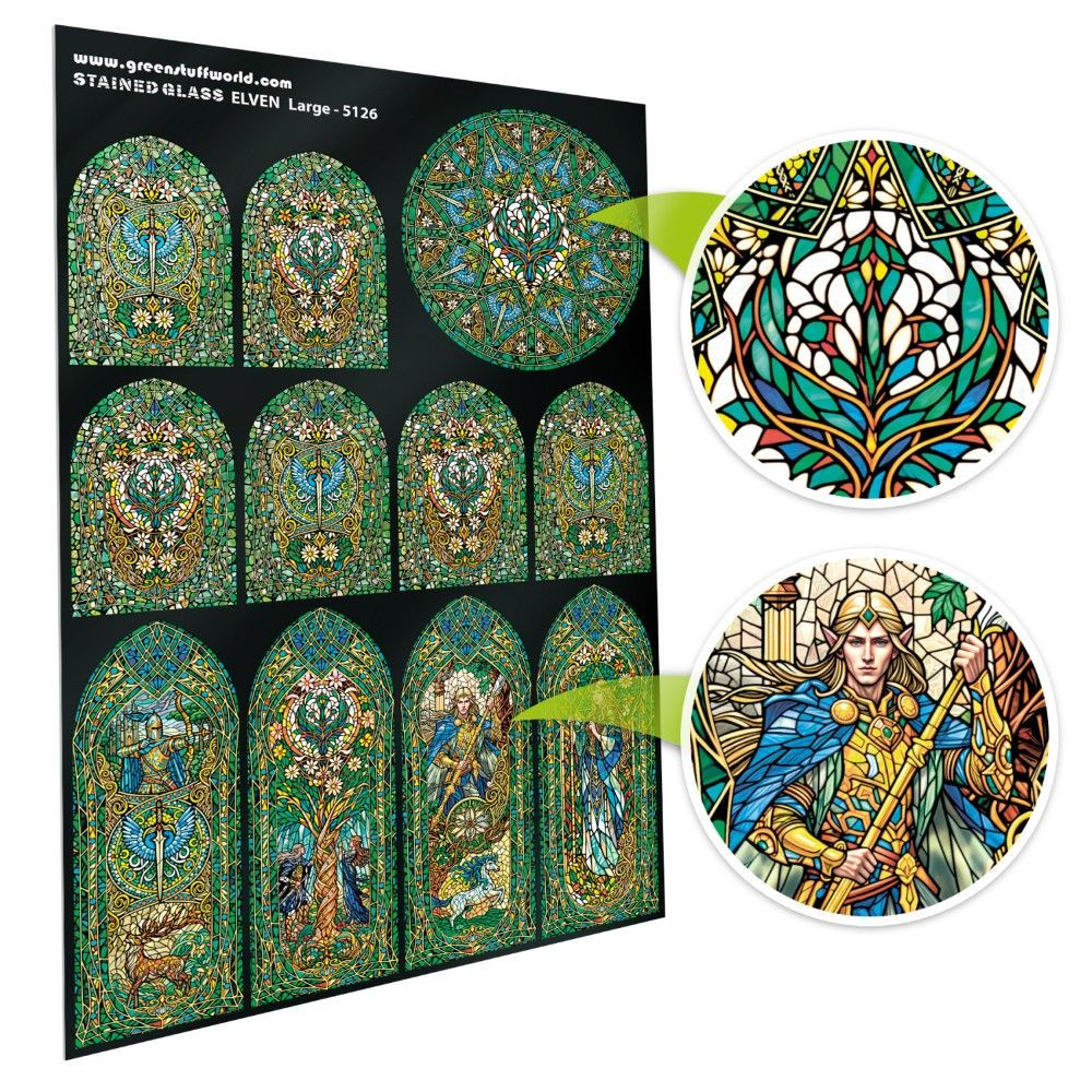 A Nagyméretű Tünde Ólomüveg Egy nyomtatott miniatűr ólomüveg kép, amelyet fantasy jelenetekhez, diorámákhoz, babaházakhoz és részletes modellekhez terveztek. A finom tünde motívumok és az élénk színek varázslatos hangulatot és magas fokú realizmust kölcsönöznek projektjeidnek.