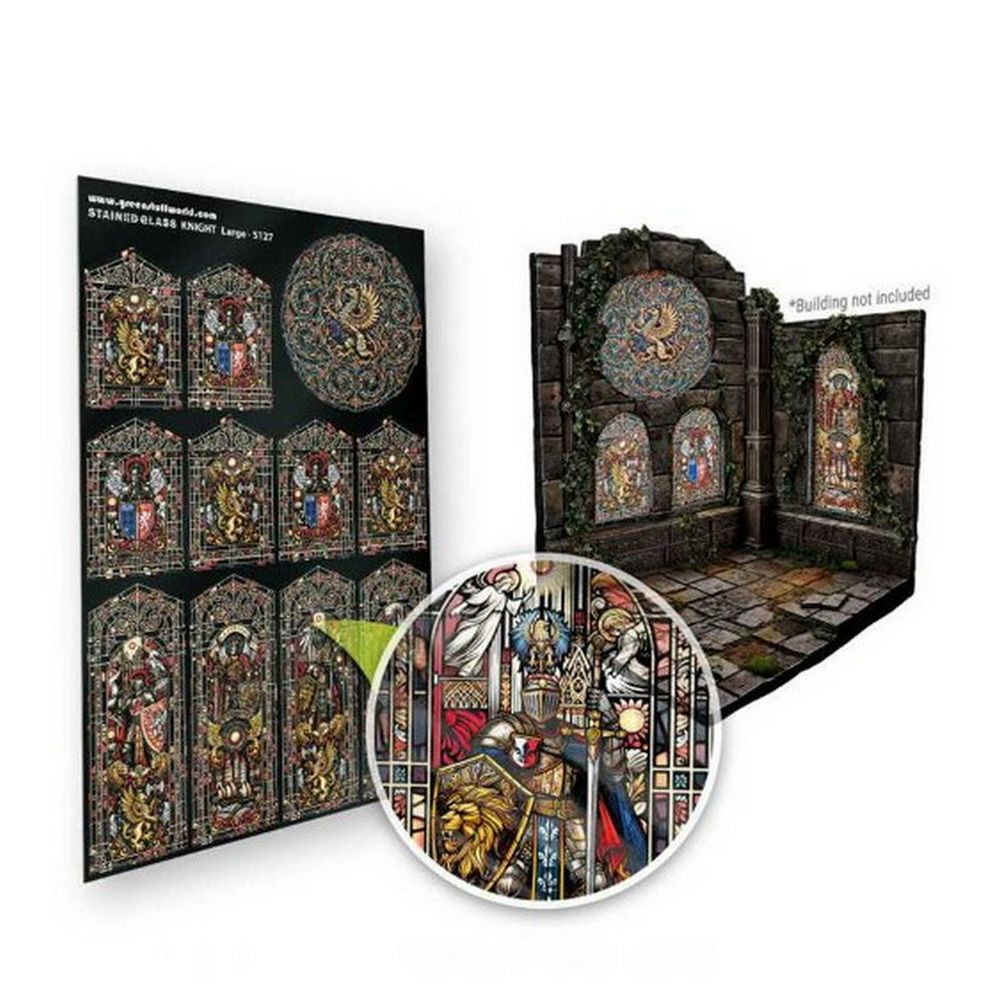 A fény és a szín kombinációja mélységet és realizmust kölcsönöz a jeleneteknek. Még jobb eredmény elérése érdekében javasoljuk, hogy ezt az ólomüveg ablakot a Green Stuff World miniatűr ablakkeretekkel együtt használja. Az összeszereléshez PVA ragasztó vagy cianoakrilát ragasztó használata ajánlott.