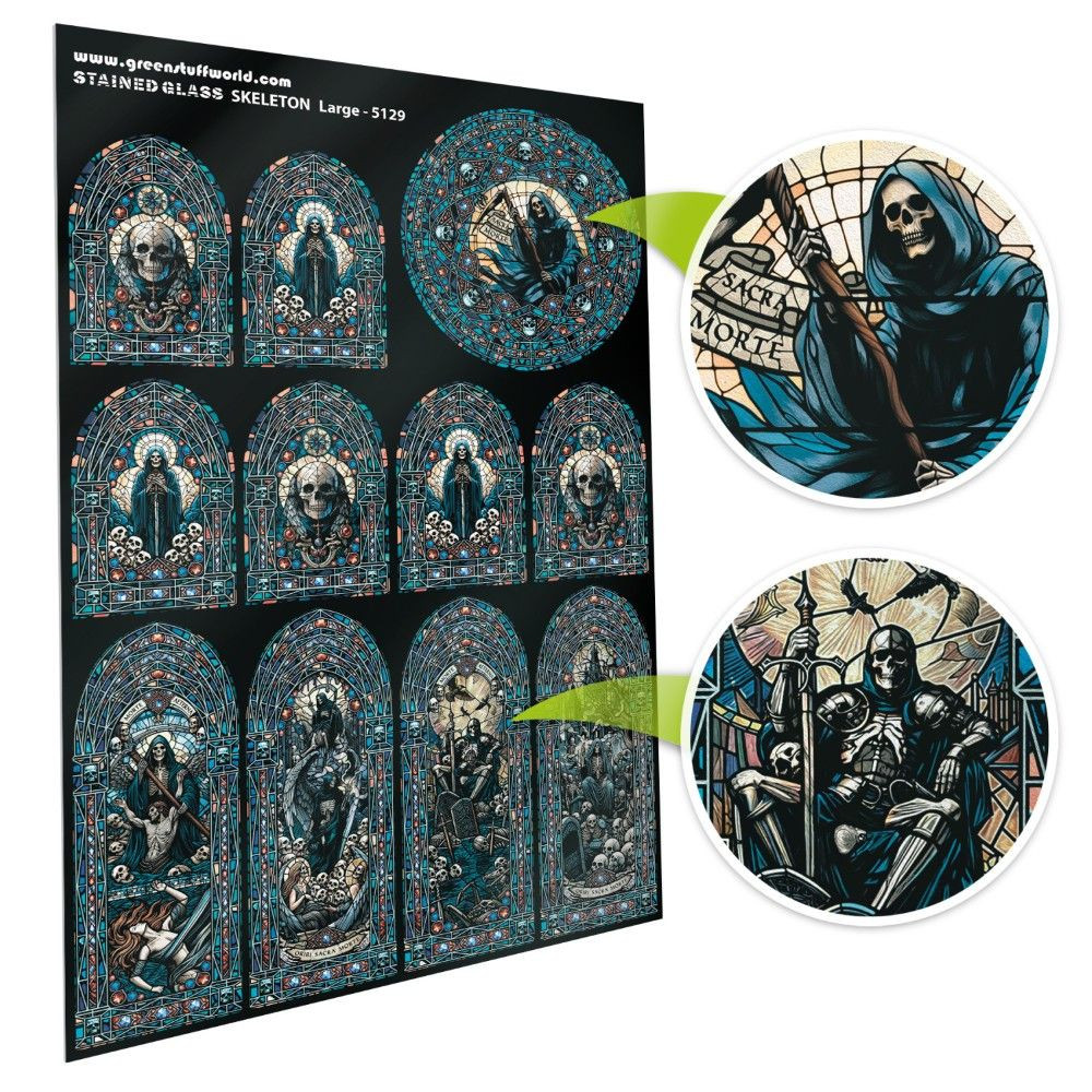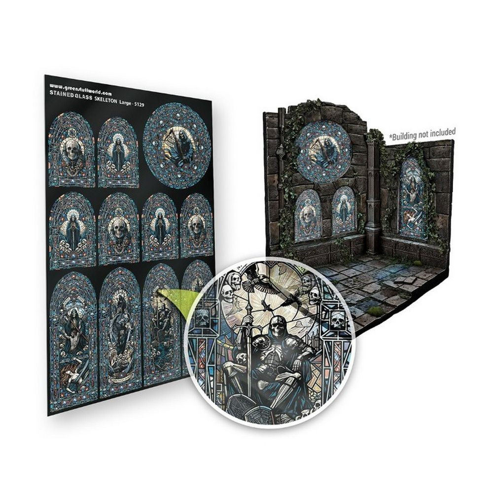A Nagyméretű csontváz egy nyomtatott miniatűr ólomüveg, amely jellegzetes sötét hangulatot kölcsönöz diorámáknak, modelleknek és babaházaknak. A részletes csontváz motívum és a gazdag színek hűen emlékeztetnek a klasszikus gótikus ólomüvegre.