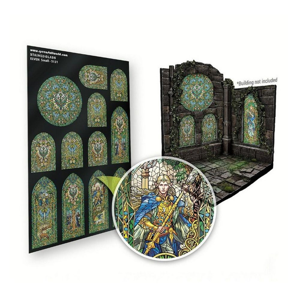Az ólomüvegen áthaladó színes fény mélységet és realisztikus érzetet kölcsönöz a jeleneteknek. A legjobb eredmény elérése érdekében a Green Stuff World miniatűr ablakaival való kombinálást javasoljuk. Az összeszereléshez PVA ragasztót vagy cianoakrilát ragasztót használjon.
