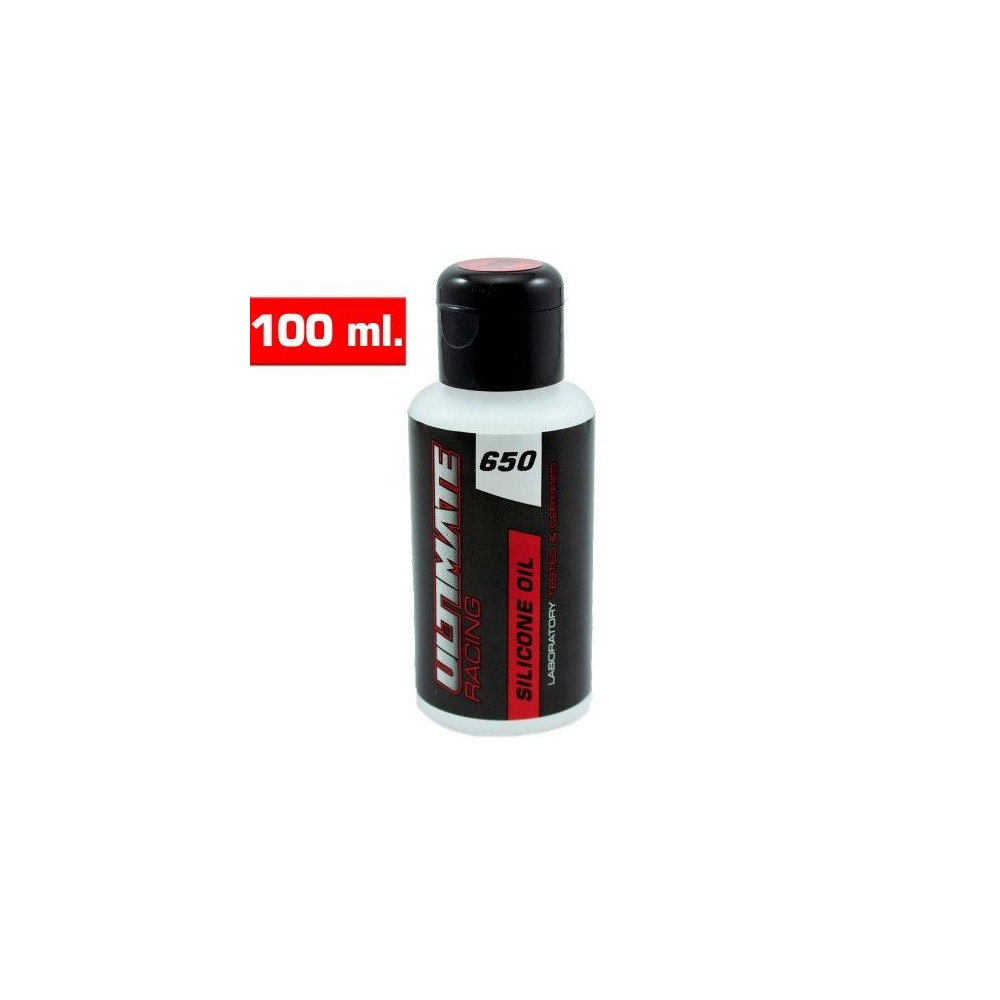 Ez egy 100 ml-es flakon Ultimate Racing 650 cSt szilikonolaj, amelyet lengéscsillapító olajban használnak. Az Ultimate Racing lengéscsillapító olaj 100% tisztaságú szilikonolajból készül, és nem hígul el meleg időben, illetve nem sűrűsödik be hideg időben. Minél magasabb az olaj viszkozitási száma, annál sűrűbb az olaj. Az Ultimate Racing szilikonolaj súrlódásgátló adalékanyagokat tartalmaz a lengéscsillapító élettartamának biztosítása és a viszkozitásváltozások minimalizálása érdekében.