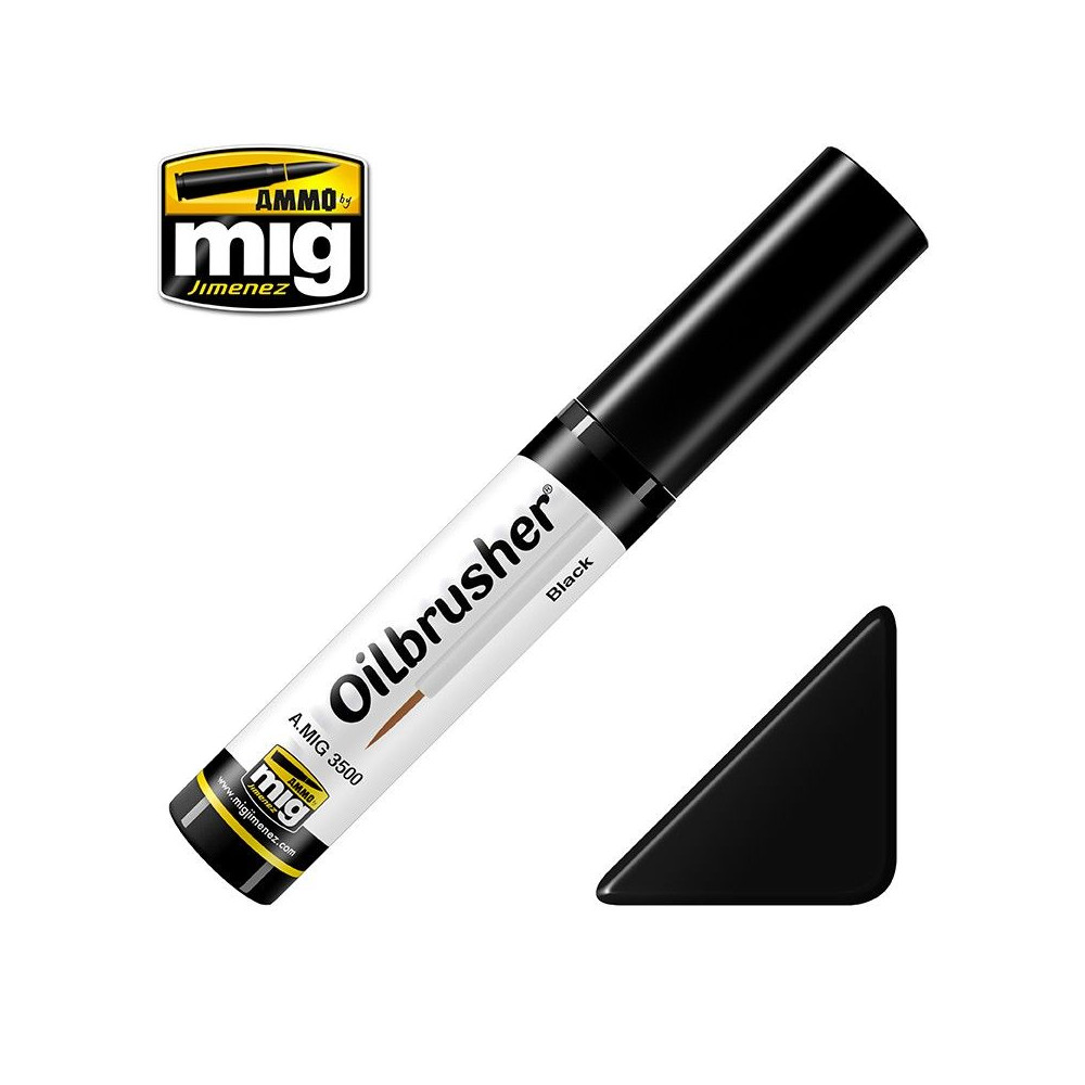 Farebná škála OILBRUSHER zahŕňa najbežnejšie odtiene používané v maketách, čím sa predchádza zbytočným tónom, ktoré by inak zostali väčšinou nevyužité na lavici. Maľovanie olejovými farbami ešte nikdy nebolo také zábavné a jednoduché. OILBRUSHER je vaša olejová farba so zabudovaným aplikačným štetcom; jedinečný a exkluzívny produkt AMMO.