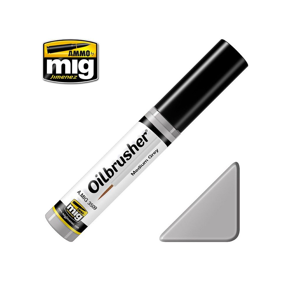 Farebná škála OILBRUSHER zahŕňa najbežnejšie odtiene používané v maketách, čím sa predchádza zbytočným tónom, ktoré by inak zostali väčšinou nevyužité na lavici. Maľovanie olejovými farbami ešte nikdy nebolo také zábavné a jednoduché. OILBRUSHER je vaša olejová farba so zabudovaným aplikačným štetcom; jedinečný a exkluzívny produkt AMMO.