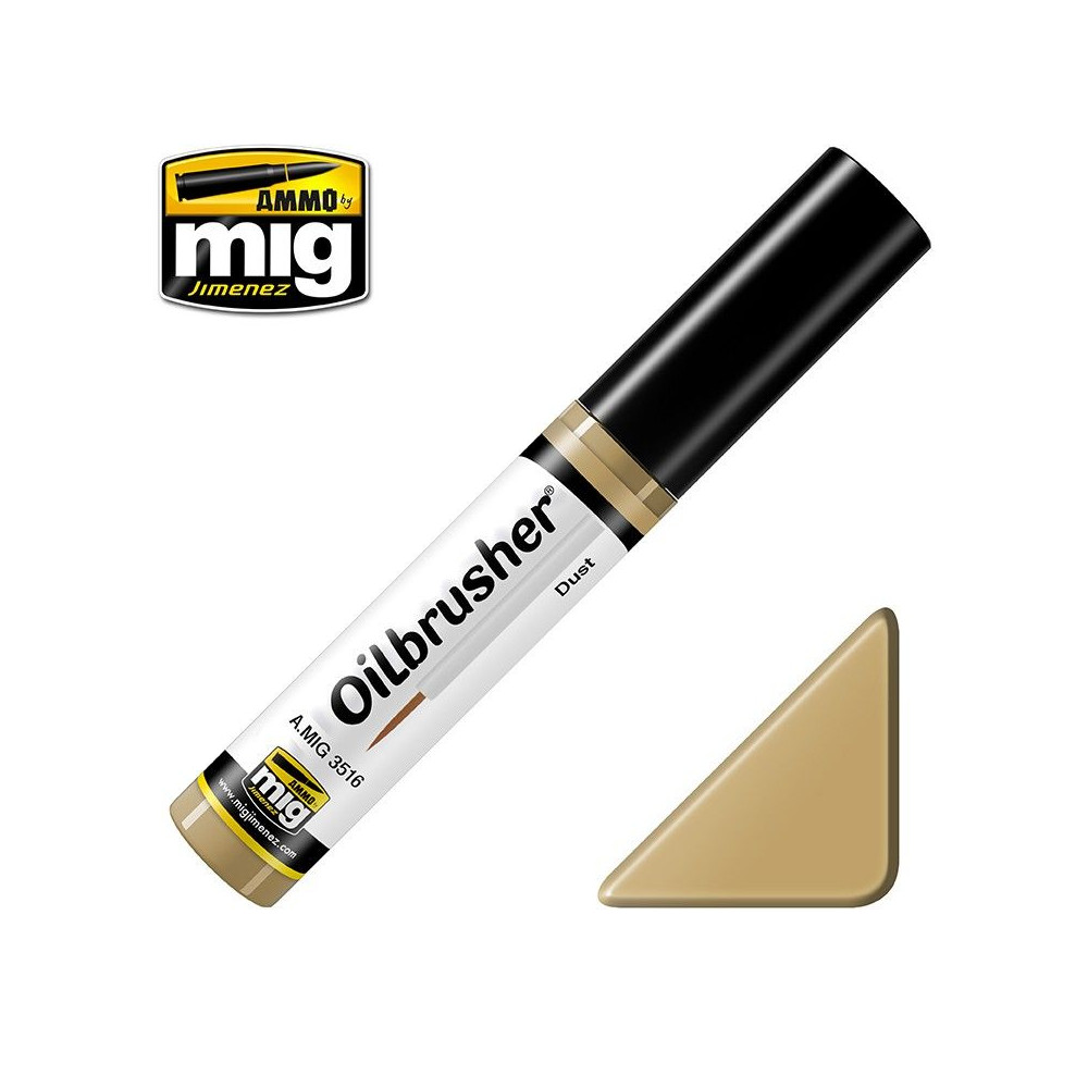 Farebná škála OILBRUSHER zahŕňa najbežnejšie odtiene používané v maketách, čím sa predchádza zbytočným tónom, ktoré by inak zostali väčšinou nevyužité na lavici. Maľovanie olejovými farbami ešte nikdy nebolo také zábavné a jednoduché. OILBRUSHER je vaša olejová farba so zabudovaným aplikačným štetcom; jedinečný a exkluzívny produkt AMMO.