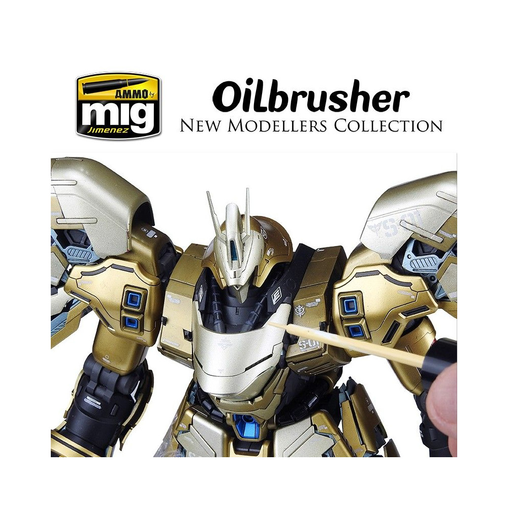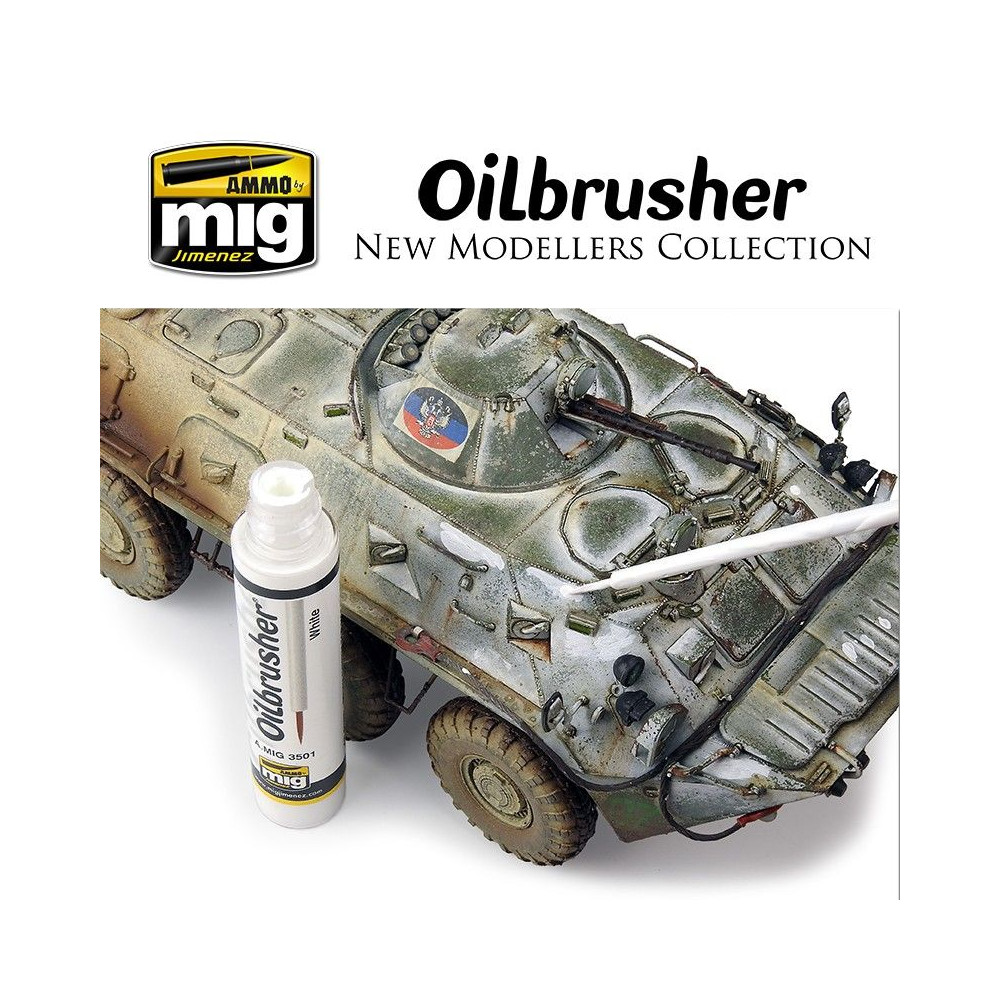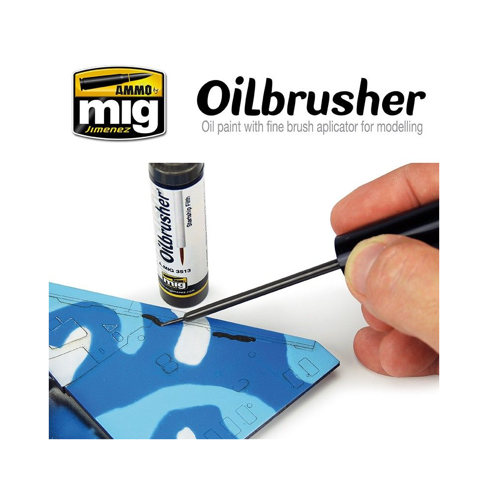 Nový OILBRUSHER je dokonalý a revolučný modelovací produkt. OILBRUSHER obsahuje vysokokvalitnú olejovú farbu špeciálne vyvinutú na modelárske použitie, zriedenú na dokonalú konzistenciu, ktorá sa nanáša priamo z nádobky. Uzáver má exkluzívne zabudovaný vysoko presný štetec na nanášanie farby priamo na model bez toho, aby ste museli olejovú farbu nanášať na paletu alebo kus kartónu. Tento vývoj zabraňuje vysychaniu oleja a zbytočnému plytvaniu produktom. Moderná nádoba navyše obsahuje systém dávkovača-čističa, ktorý odstraňuje prebytočnú farbu zo štetca a ponecháva v špičke len správne množstvo. Tradičné tuby na olejovú farbu boli neporiadne a ťažko sa otvárali, keď olejová farba zaschla okolo uzáveru a spôsobila jeho zaseknutie. To sa pri OILBRUSHER nestáva, je vždy čistý a stabilný. Okrem všetkých týchto výhod tento revolučný dizajn z dlhodobého hľadiska šetrí aj výrobok a náklady, najmä ak vezmeme do úvahy, že OILBRUSHER je lacnejší ako tradičné olejové farby na trhu.