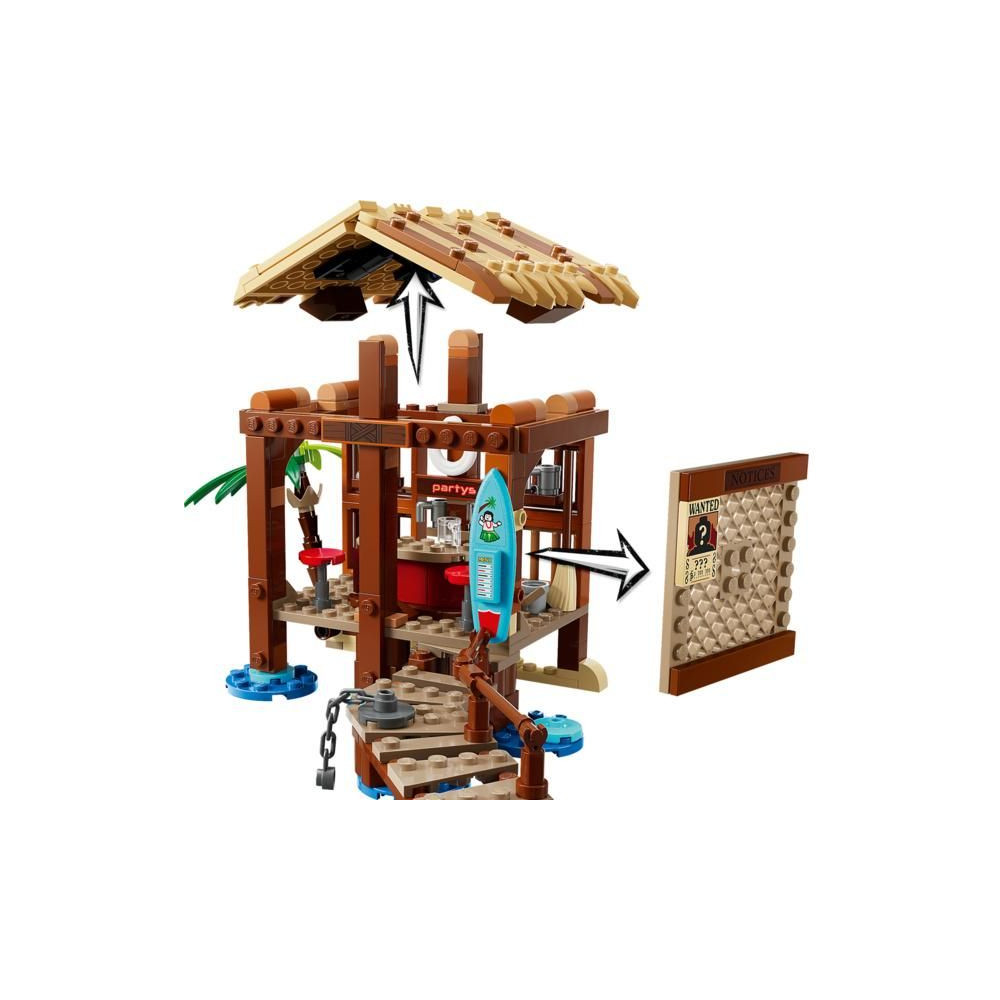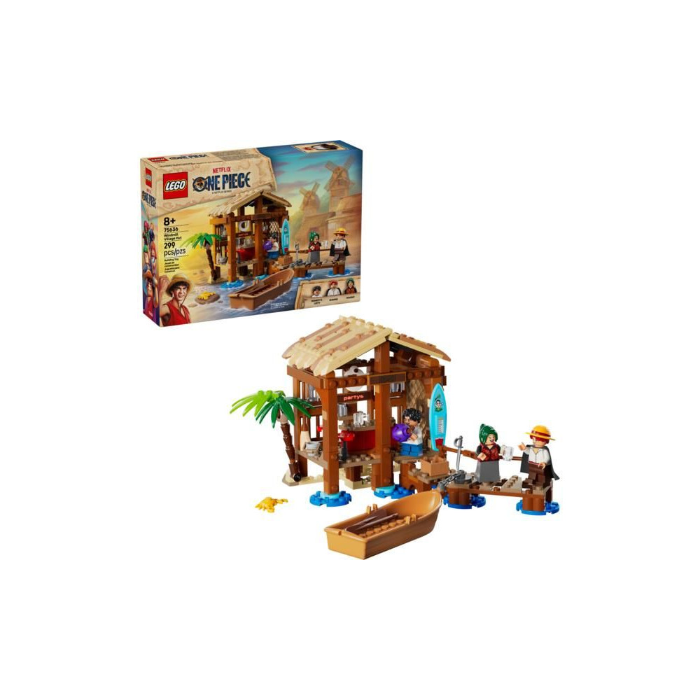 A gyerekek leszerelhetik a tengerparton lévő bolt tetejét, és bepillantást nyerhetnek a szórakoztató részletekkel teli belső térbe. Belül kiegészítőket találnak az üzlet működtetéséhez és a vásárlók elkobzásához. Egy körözési plakát lóg a falon, és van hely további plakátoknak is, amelyek más LEGO® ONE PIECE építőkészletekben is megtalálhatók (külön megvásárolhatók). Kívül egy kalózhajót találsz, amely a mólóhoz van kötve. A készlet Luffy, Shanks és Makino minifiguráit tartalmazza, a Netflix sorozat 3 felejthetetlen szereplőjét. Még több digitális szórakozásért az építők 3D-ben nagyíthatják és forgathatják a modelleket, és az intuitív LEGO Builder alkalmazás segítségével nyomon követhetik az építési folyamatot. A készlet 299 alkatrészt tartalmaz.