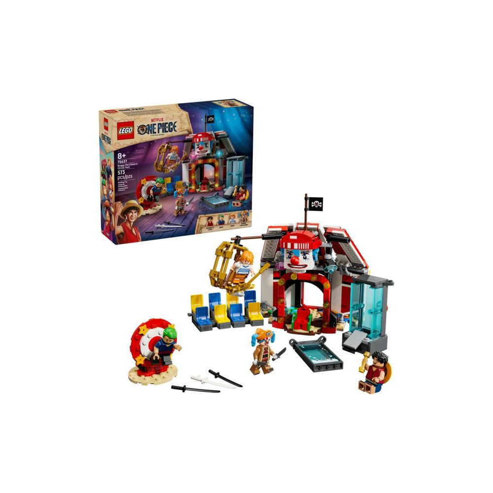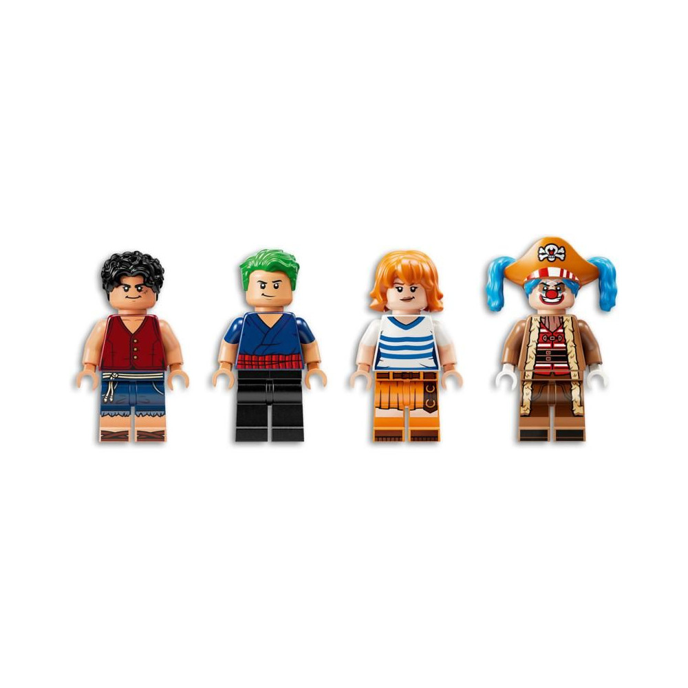 A készlet tartalmazza Luffy, Zoro, Nami és a kalózkapitány, Bohóc Buggy minifiguráit. Az összecsukható sátor megfordítható, így egy nagyobb játékterület hozható létre levehető részekkel, székekkel és Buggy trónjával. 3 cirkuszi csapda is található, amelyekből a hősöknek ki kell szabadulniuk: egy víztartály, egy forgó célpont és egy függő ketrec. A sátorban dobozokat és hordókat találsz alkatrészekkel, amelyekből Buggy egy kisebb változatát építheted. Rengeteg klassz fegyver és kiegészítő található, köztük 2 körözési plakát is. Még több digitális móka érdekében az építők 3D-ben nagyíthatnak és forgathatnak modelleket, és az intuitív LEGO Builder alkalmazás segítségével nyomon követhetik az építési folyamatot. A készlet 573 alkatrészt tartalmaz.