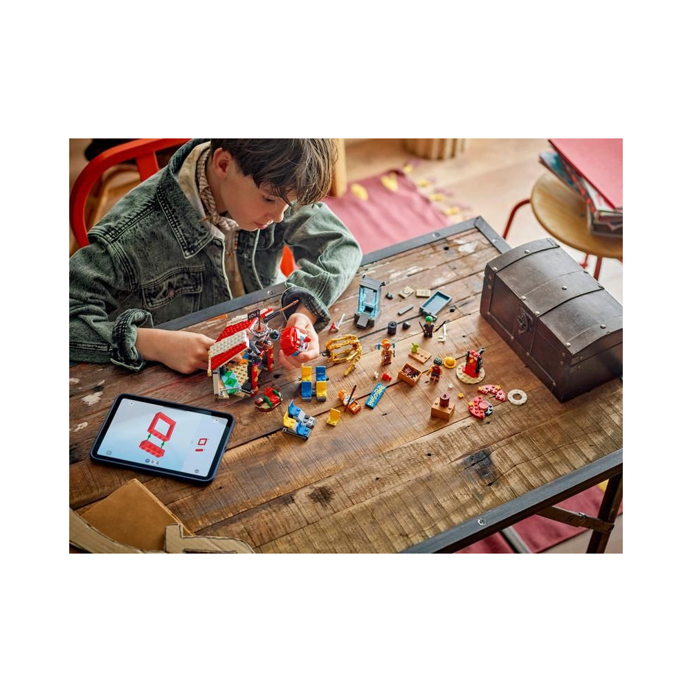 - 3D építési útmutató – A gyerekek letölthetik a LEGO® Builder alkalmazást, és magával ragadó építési élményben részesülhetnek a digitális 3D zoom és forgatási funkciókkal, valamint a készletek mentésének és az előrehaladás megtekintésének lehetőségével.