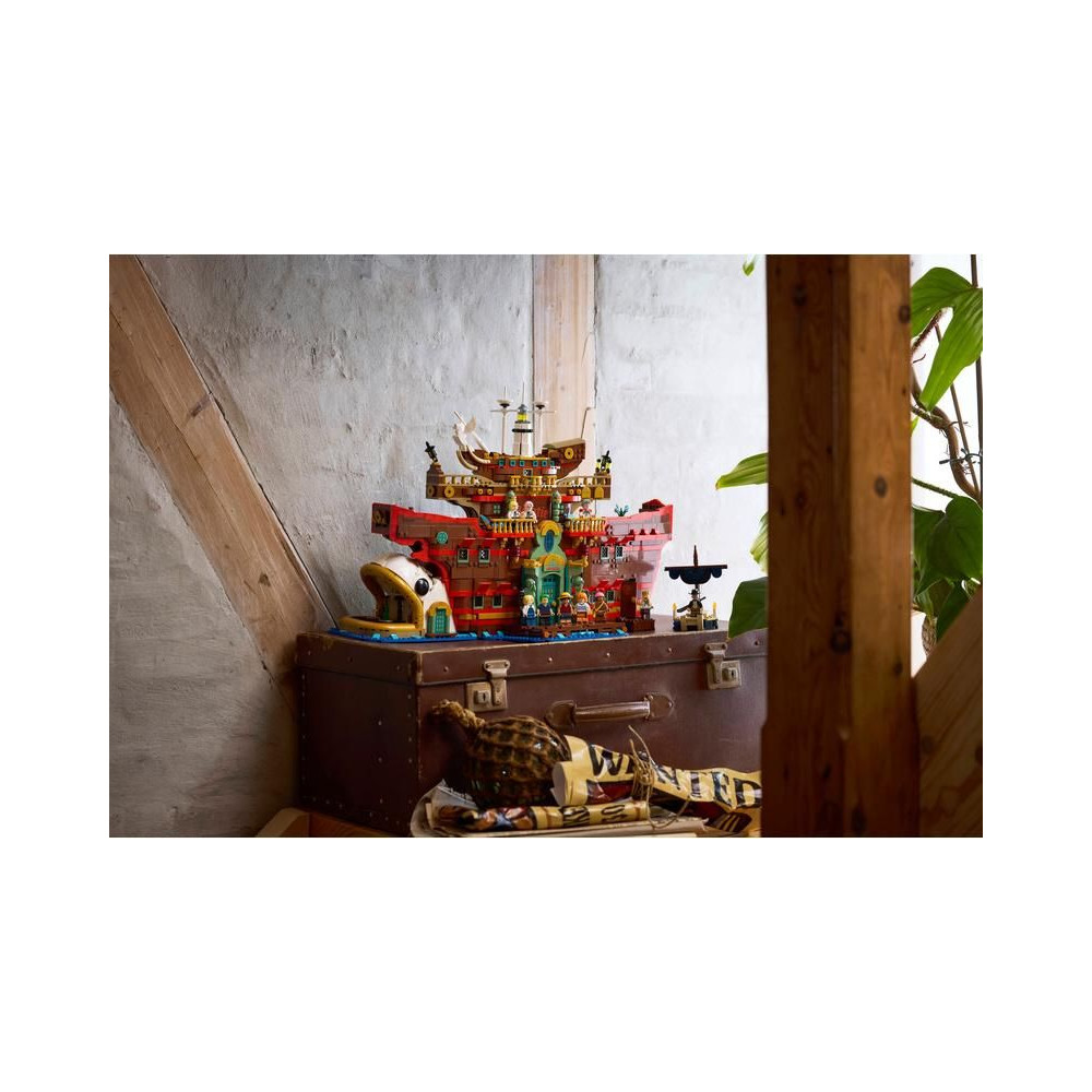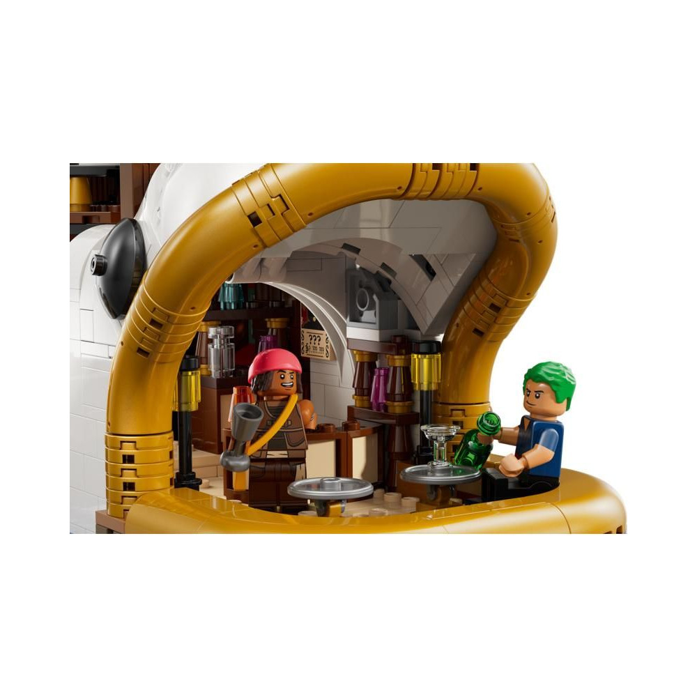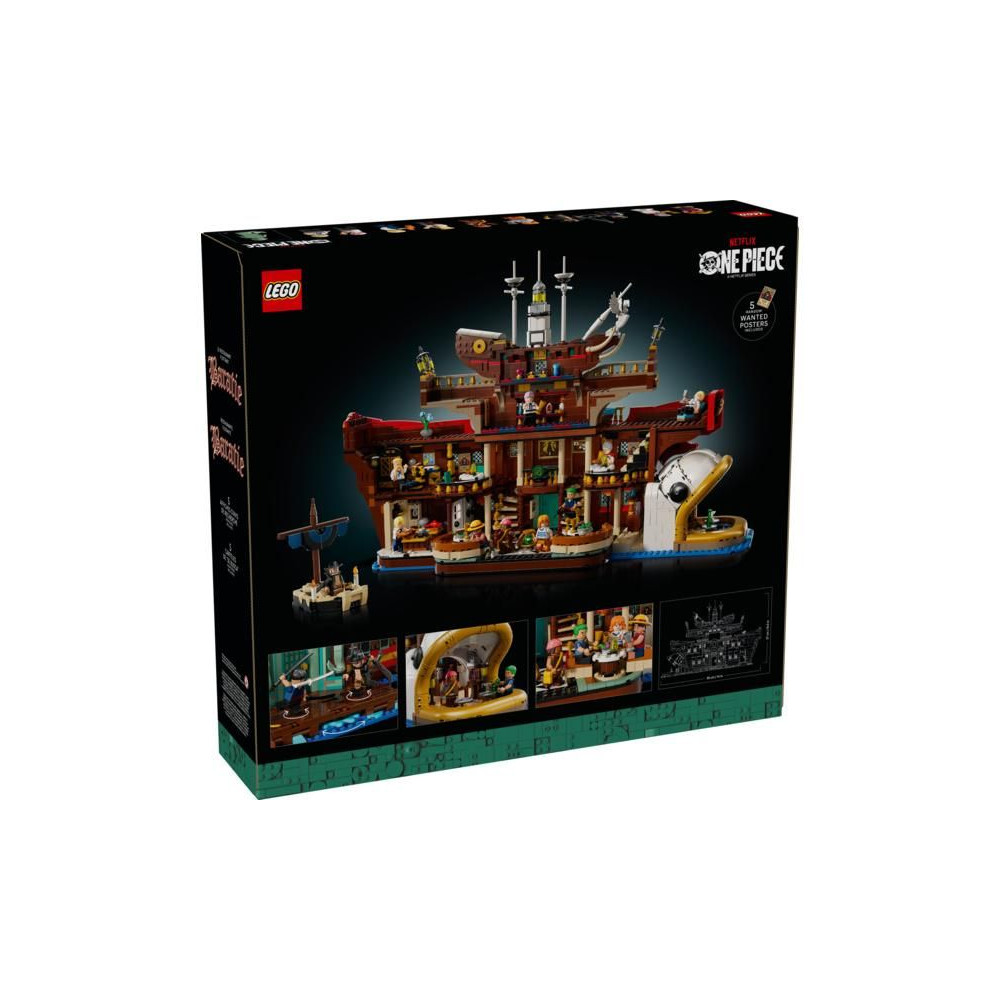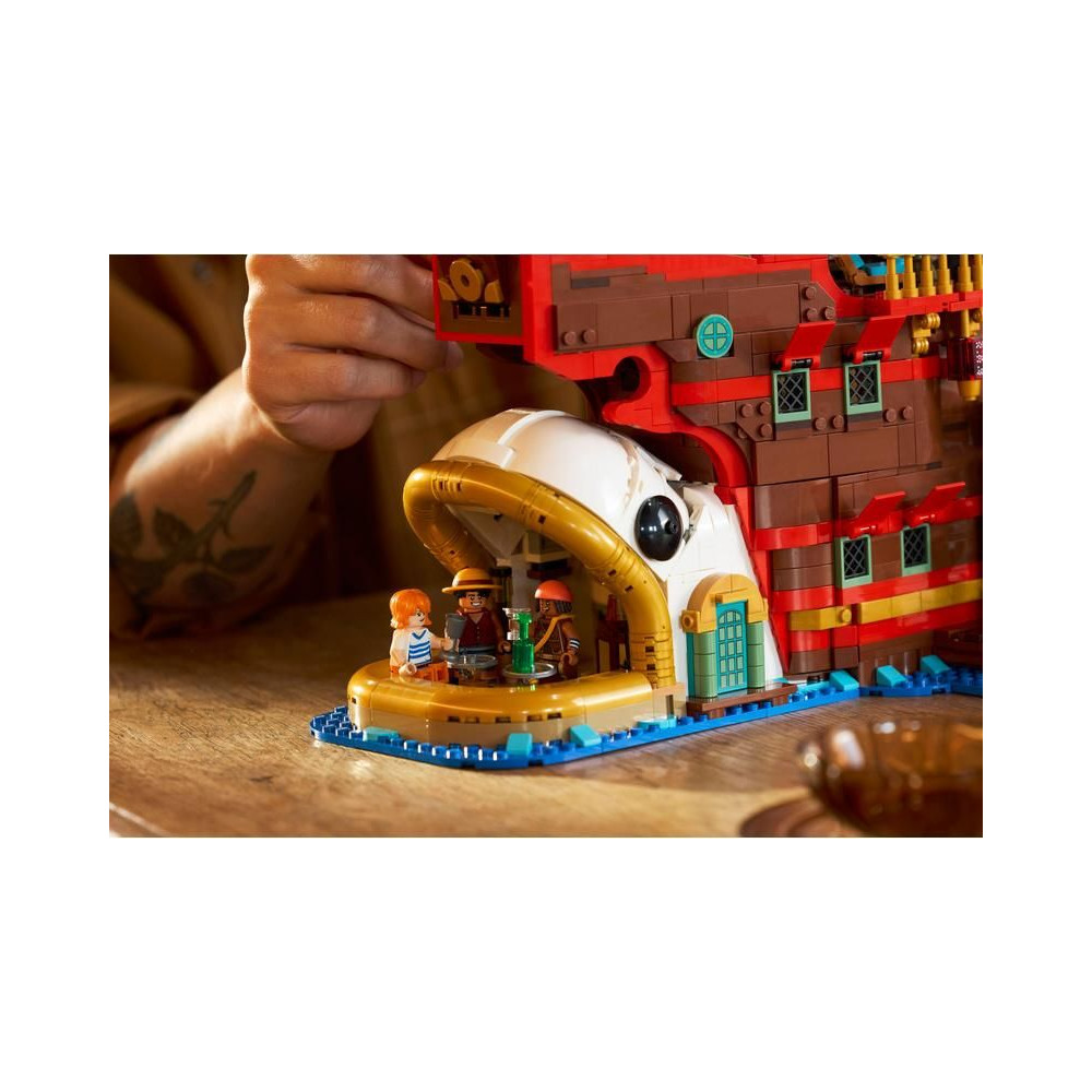 Ez a lenyűgöző, hajó alakú kiállítási darab számos akadálymentesített szobát tartalmaz, köztük egy konyhát és étkezőt, Zeff kabinját és egy kincseskamrát. Éld át újra a klasszikus jeleneteket 10 LEGO minifigurával: Luffy, Zoro, Nami, Usopp, Sanji, Zeff, Garp, Helmepp, Koby és Mihawk. A készlet számos eredeti kiegészítőt is tartalmaz, köztük 5 plakátot körözött személyekkel. A LEGO Builder alkalmazás lehetővé teszi a felhasználók számára, hogy 3D-ben nagyítsák és forgatsák a modelleket, és nyomon kövessék az építési folyamatot.