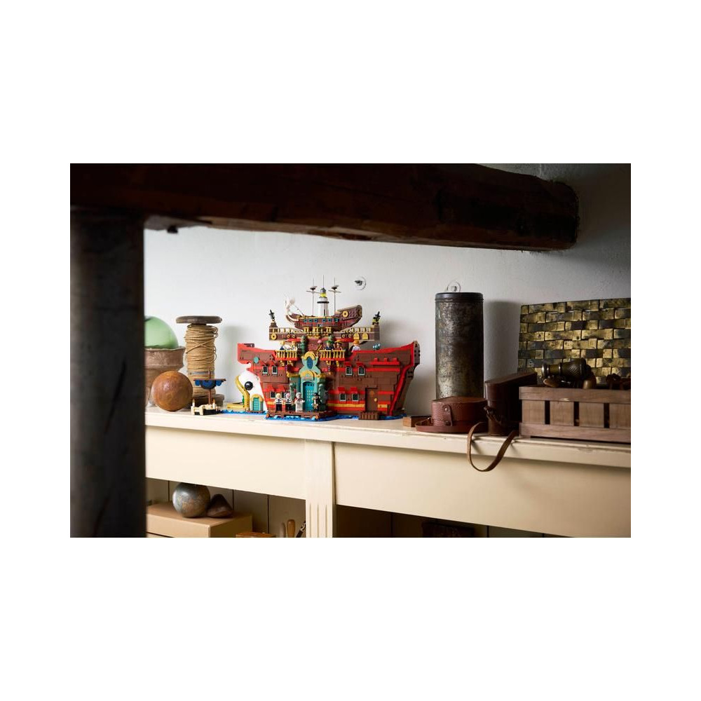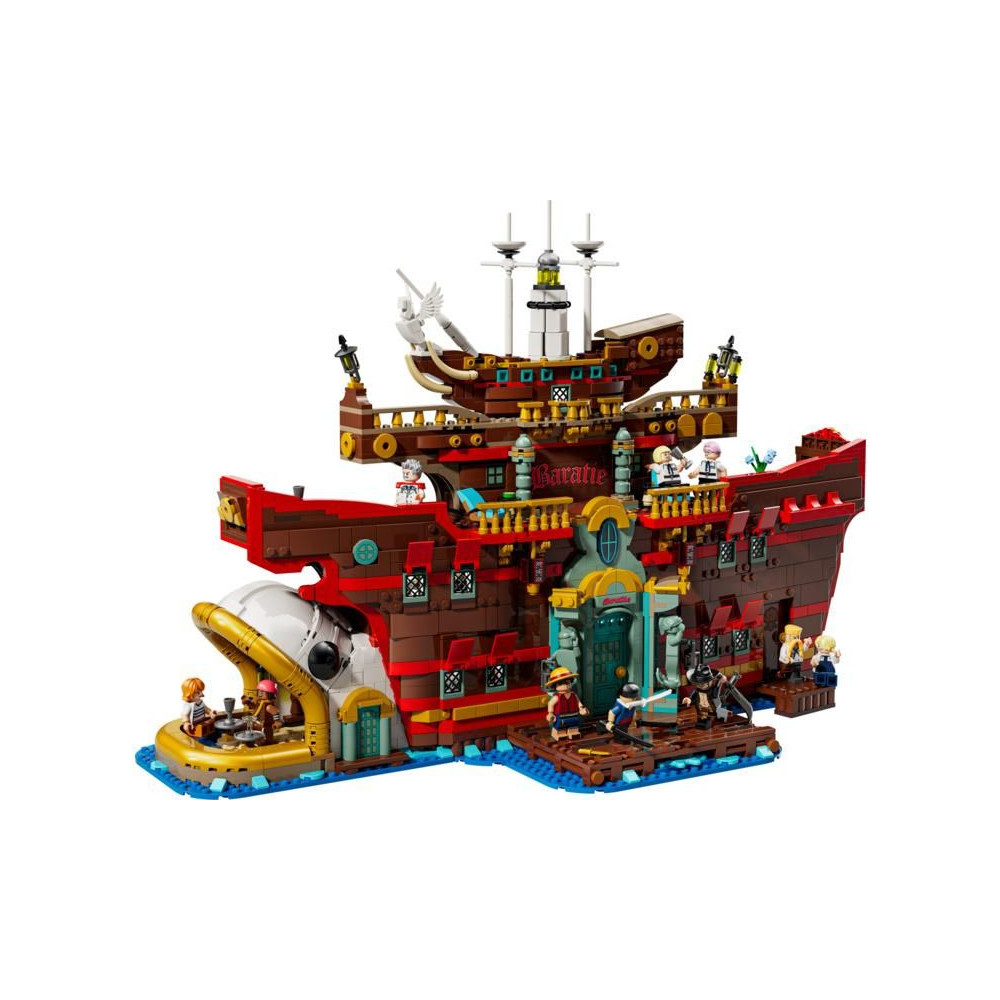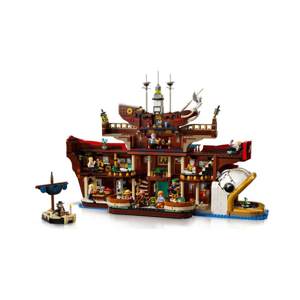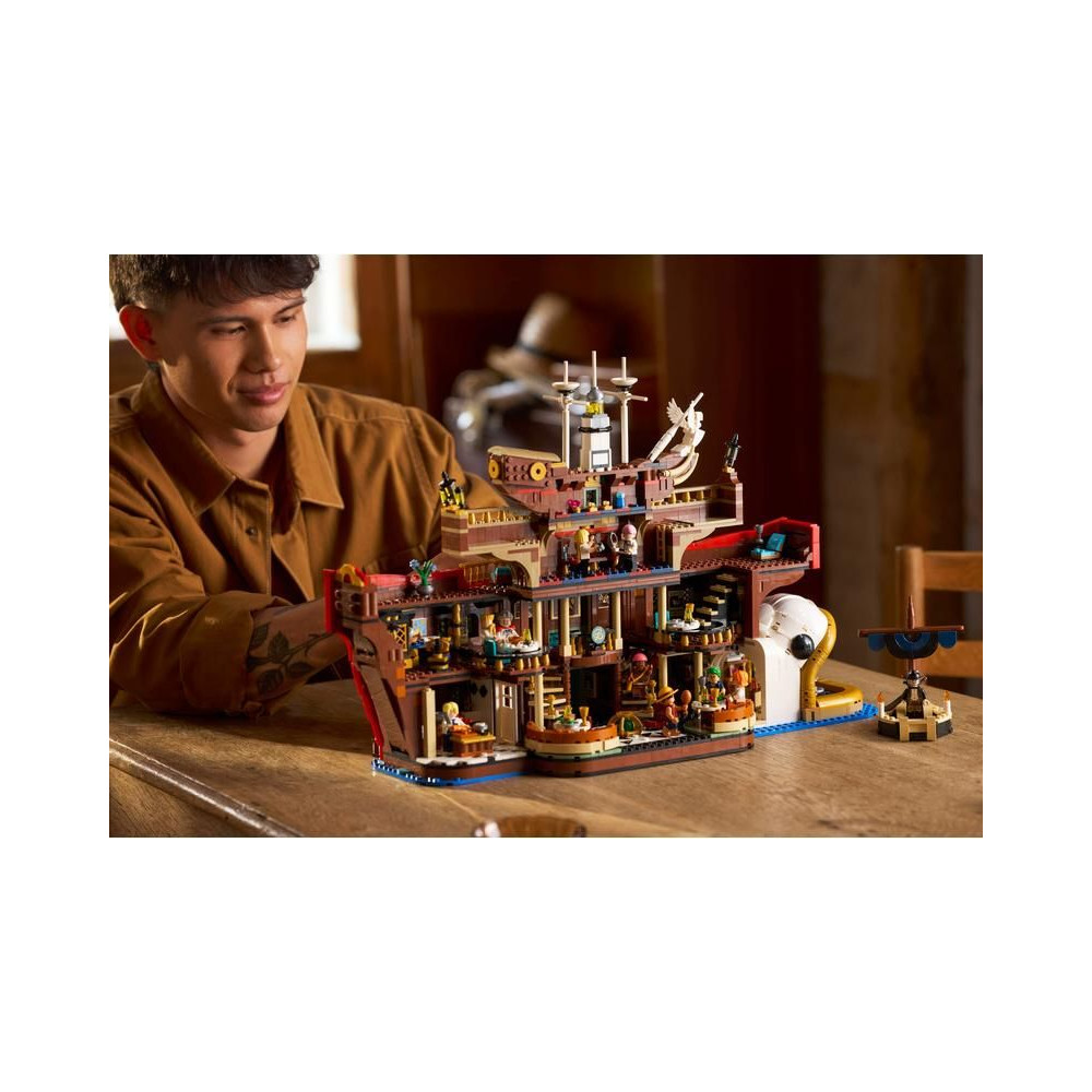 Ez a lenyűgöző, hajó alakú kiállítási darab számos akadálymentesített szobát tartalmaz, köztük egy konyhát és étkezőt, Zeff kabinját és egy kincseskamrát. Éld át újra a klasszikus jeleneteket 10 LEGO minifigurával: Luffy, Zoro, Nami, Usopp, Sanji, Zeff, Garp, Helmepp, Koby és Mihawk. A készlet számos eredeti kiegészítőt is tartalmaz, köztük 5 plakátot körözött személyekkel. A LEGO Builder alkalmazás lehetővé teszi a felhasználók számára, hogy 3D-ben nagyítsák és forgatsák a modelleket, és nyomon kövessék az építési folyamatot.