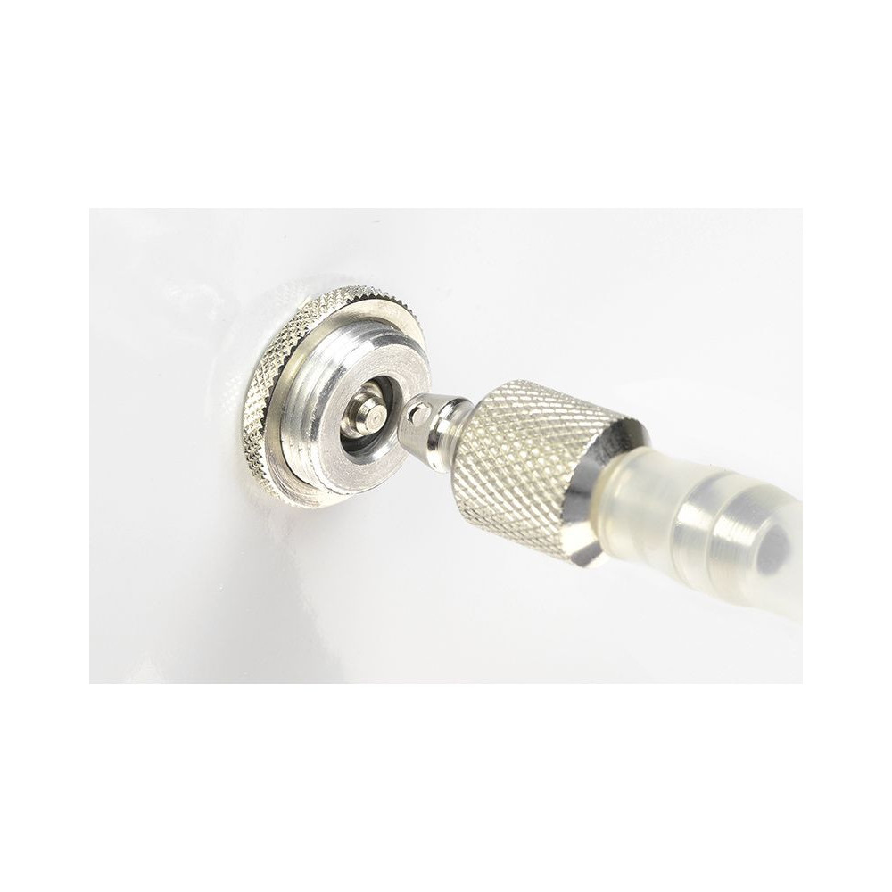 Töltőszelep nitro nagyfémhez, hossza 27mm, átmérője 19mm, a tömlő fúvókájának külső átmérője 5,5mm.