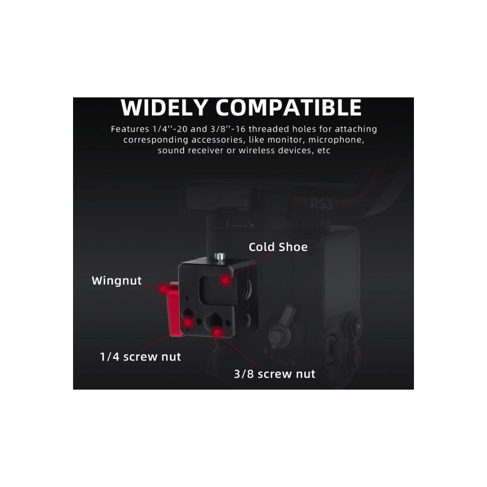 53g Hideg cipővel, 1/4 hüvelykes és 3/8 hüvelykes csavarfuratokkal. a DJI RS 4 / RS 4 Pro / RS 3 / RS 3 Pro / RS 3 mini számára.