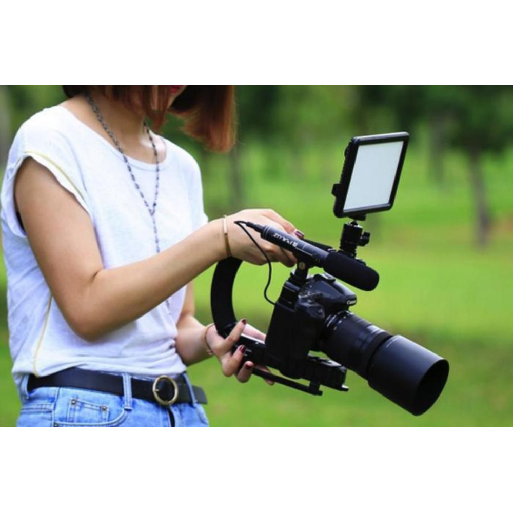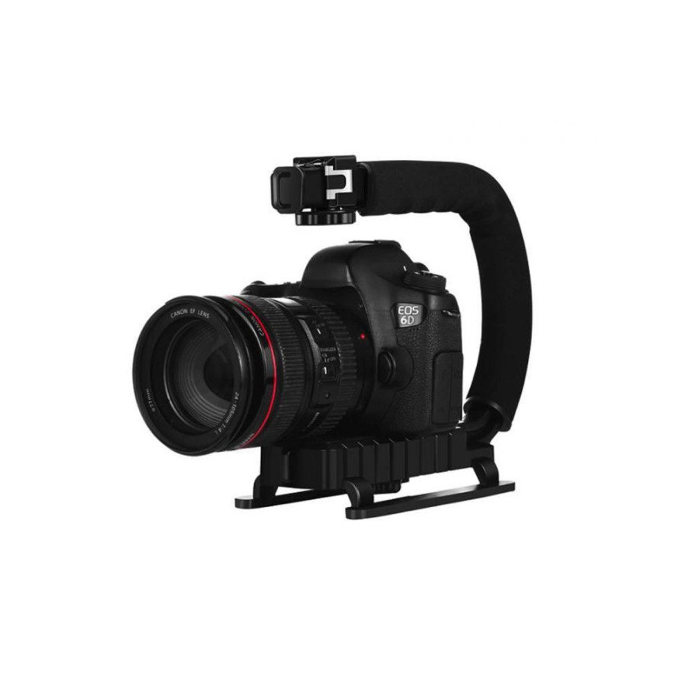 C alakú kézi stabilizátor 337 g súlyú kamerákhoz. Maximális terhelhetőség: 3000 g. 6 mm-es csavarral és 3 hidegpapucsos csatlakozóval. Kompatibilis minden SLR fényképezőgéppel vagy otthoni DV kamerával.