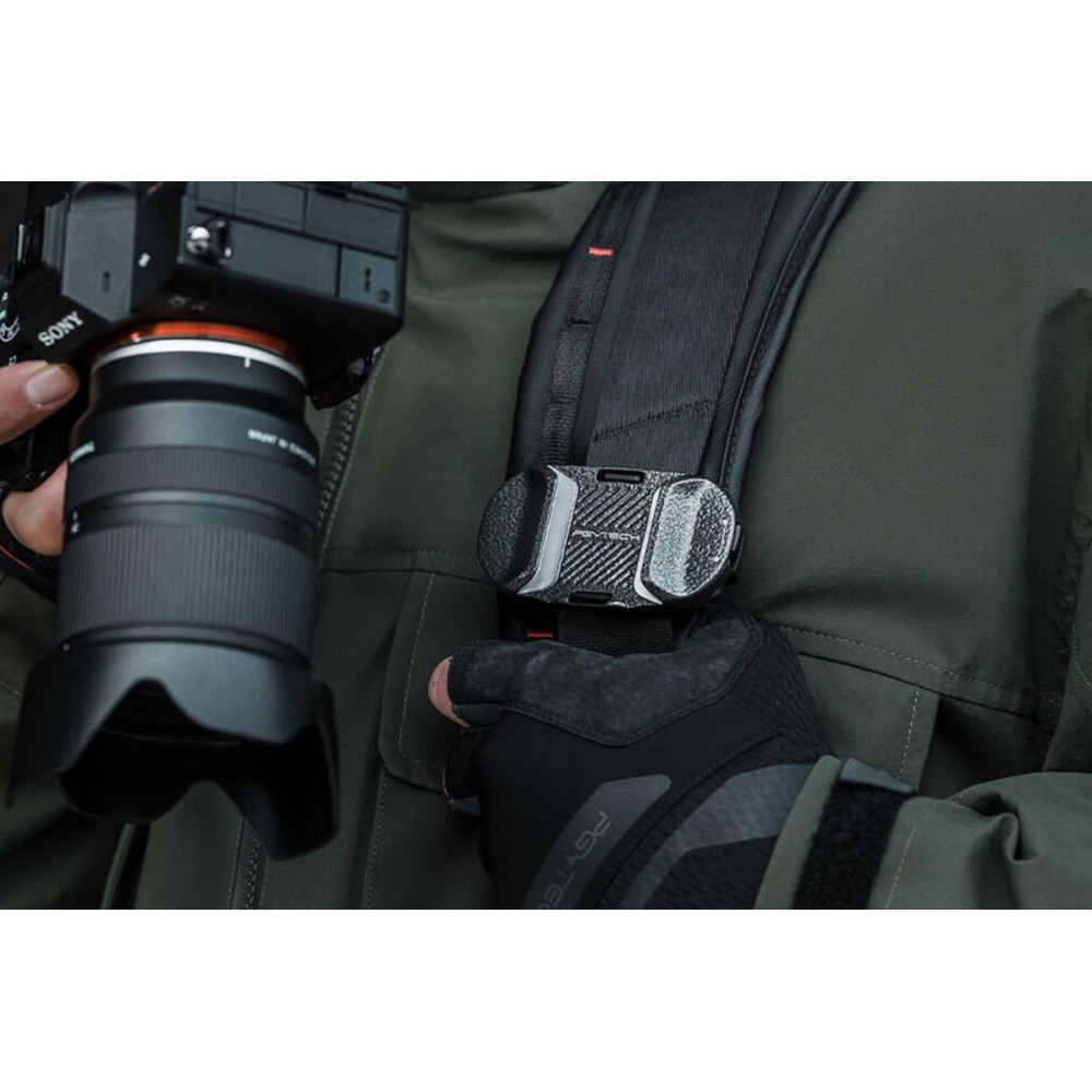A PGYTECH Beetle Camera Clip V2 egy kompakt és tartós kameratartó, amelyet kültéri használatra terveztek. Erős rögzítőpofával rögzíthető a hátizsák pántjához vagy vállpántjához, és lehetővé teszi a kamera gyors rögzítését egy szabványos 1/4"-os menettel. Kiváló minőségű fémből készült, szilárdságot, megbízhatóságot és hosszú élettartamot kínál. 2,4 × 8,8 × 4,5 cm-es méreteinek és mindössze 94 g-os súlyának köszönhetően ideális utazáshoz és igényes terepi eseményekhez. Az elegáns fekete dizájn kiegészíti a modern megjelenést.