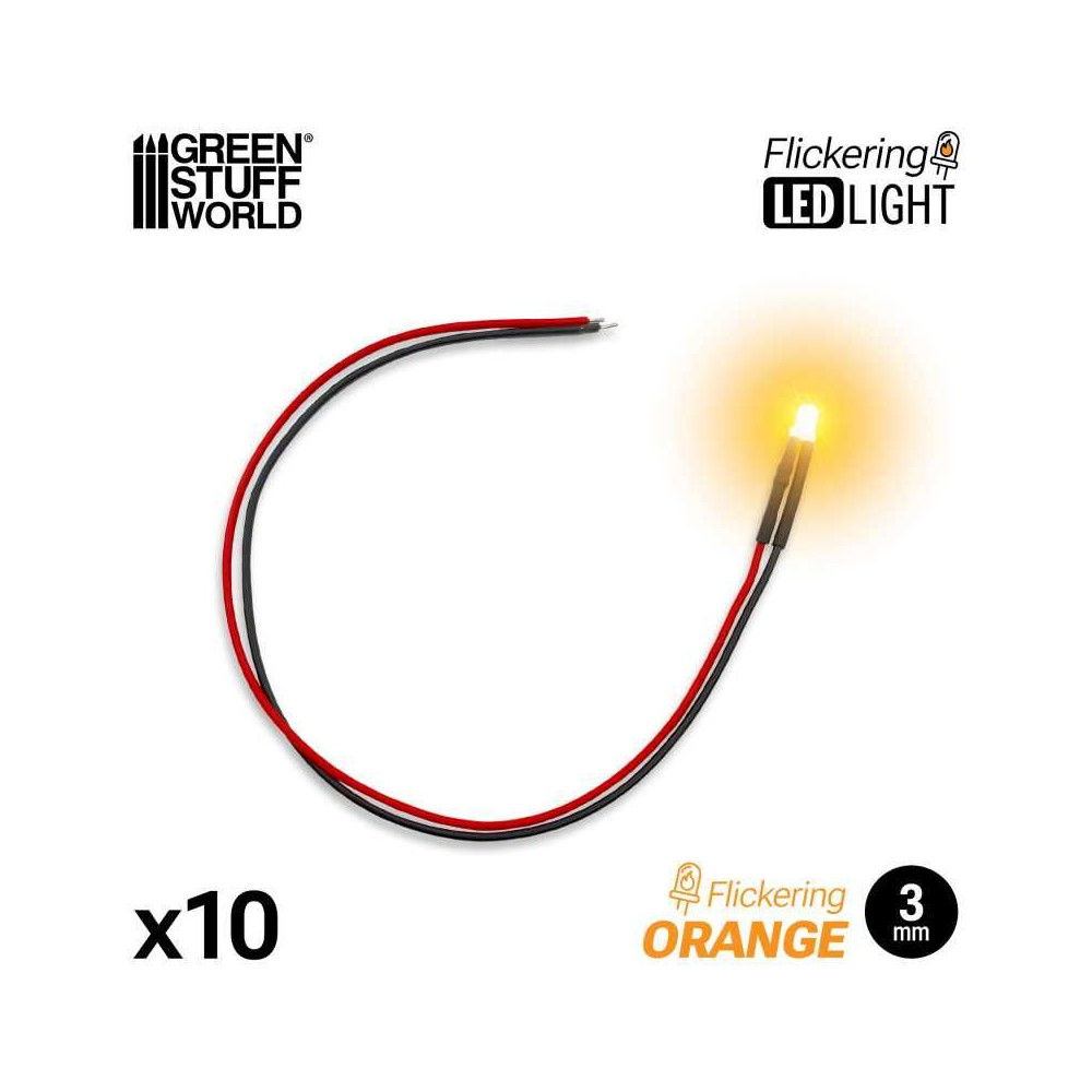 A villódzó LED-eket dinamikus fényforrások szimulálására használják, és az olyan színeknek köszönhetően, mint a narancssárga, piros, kék vagy zöld, meggyőzően utánozhatják a varázslatos tűzeffektusokat vagy a titokzatos "fagyöngyöket" fantasy vagy sci-fi diorámákban. 9–12 V bemeneti feszültségen mutatnak a legjobban.