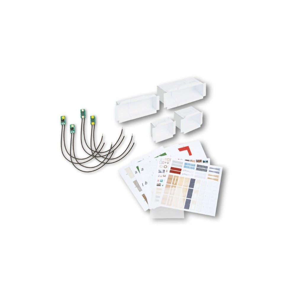 Az alapkészlet hideg fehér, meleg fehér, valamint egy- vagy kétszínű belső világítást tartalmaz az épülethez. 16 V-os modellvasút-transzformátorhoz csatlakoznak, és egyen- és váltakozó árammal is működtethetők. A mini-lemez technológiának köszönhetően közvetlenül, további előtét-ellenállások nélkül csatlakoztathatók. A villódzás nem garantált! A LED-lemezek mérete 0,7 x 1,8 cm, ezért más gyártók, például a Viessmann® otthoni világítási rendszereihez és szekrényeihez is alkalmasak.