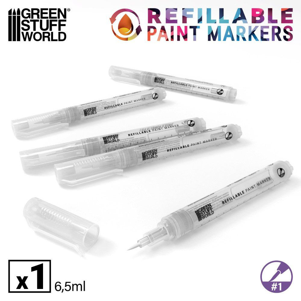 Green Stuff World utántölthető filctoll, 1.0-ás méret (1 db). Univerzálisan használható miniatúrákhoz és modellekhez, különböző színekkel és tintákkal kompatibilis, újratölthető.