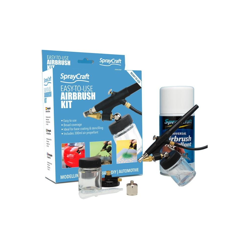 A Spraycraft SP15 egyfunkciós spray pisztoly készlet egyszerűen használható, könnyen irányítható és az alsó tartálynak köszönhetően könnyen tisztítható. Könnyedén fújhat nagyobb területeket, készíthet mintákat sablonok segítségével. A legtöbb festékkel használható. Tartalmaz egy 300 ml-es tartály sűrített levegőt.