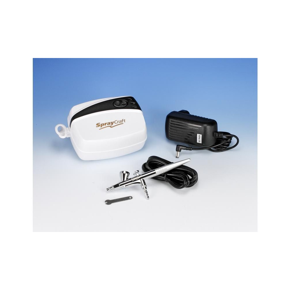 Komplett airbrush szettet keres modellezéshez, kedvező áron? A Spraycraft SP30KC komplett airbrush készlet mindent tartalmaz, amire szüksége van, és ráadásul kedvező áron! Ez a készlet ideális hobbi használatra - műanyag modellek, kis alkatrészek festésére stb. A készlet egy 12 V-os membránkompresszorból, egy festéktartályos festékszóró pisztolyból a tetején, egy 12 V-os tápegységből és egy 1,5 m-es csatlakozó nyomótömlőből áll.