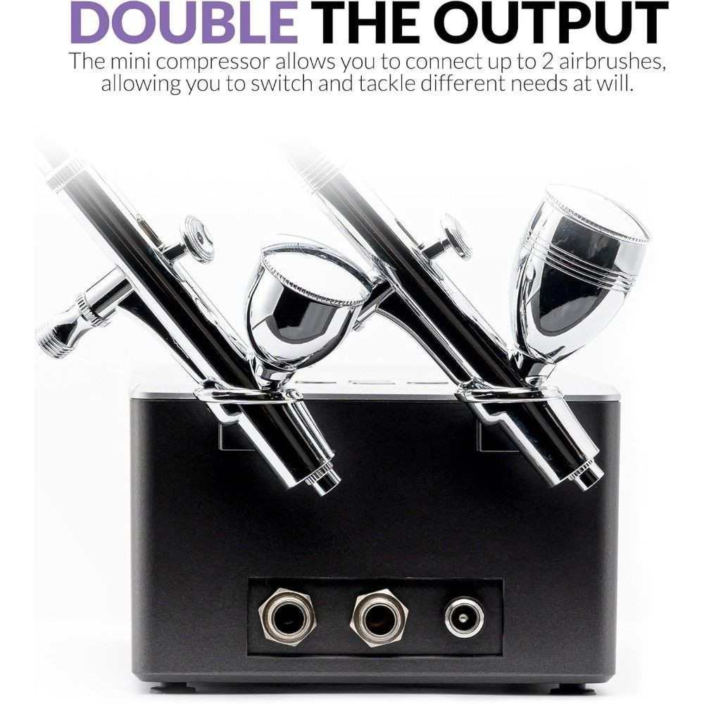 - Két airbrush kimenet – két pisztoly egyidejű csatlakoztatásának lehetősége.