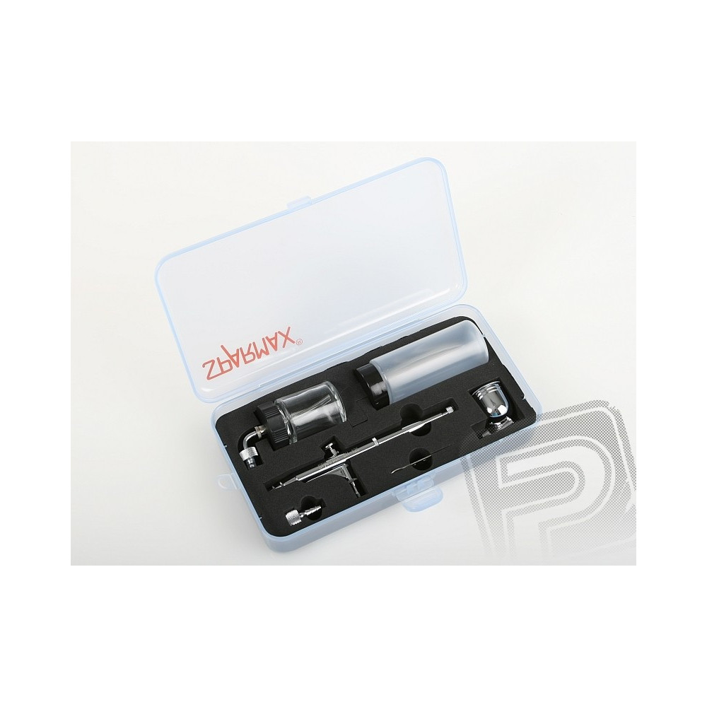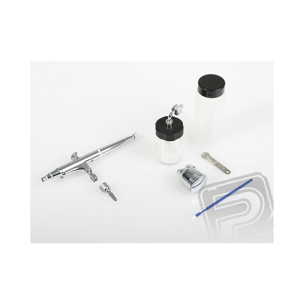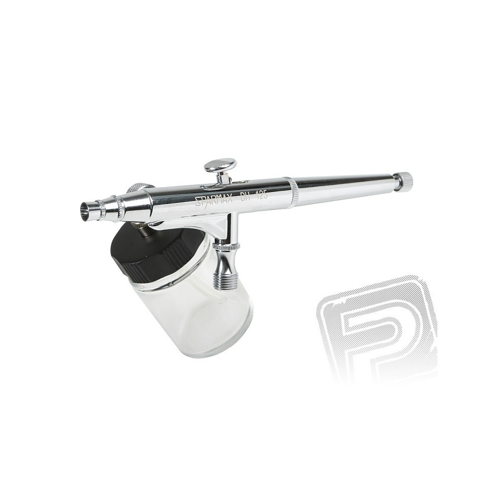 Kettős hatású szórópisztoly a finom munkálásához és a nagyobb felületekre is alkalmas. 7 vagy 22 ml-es cserélhető oldalsó flakonnal. Ideális a body-art-ra, barnító színek spray-ezesére, pólók festésére, stb.Menet az 1/8 tömlőre pászol.