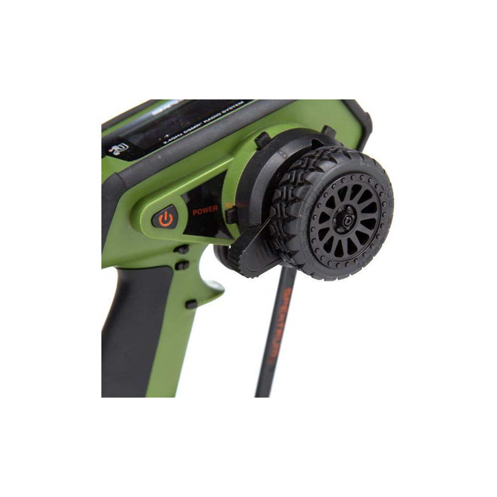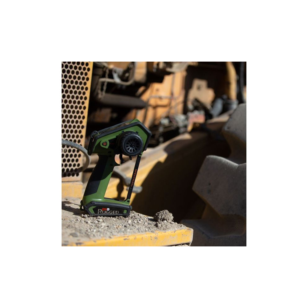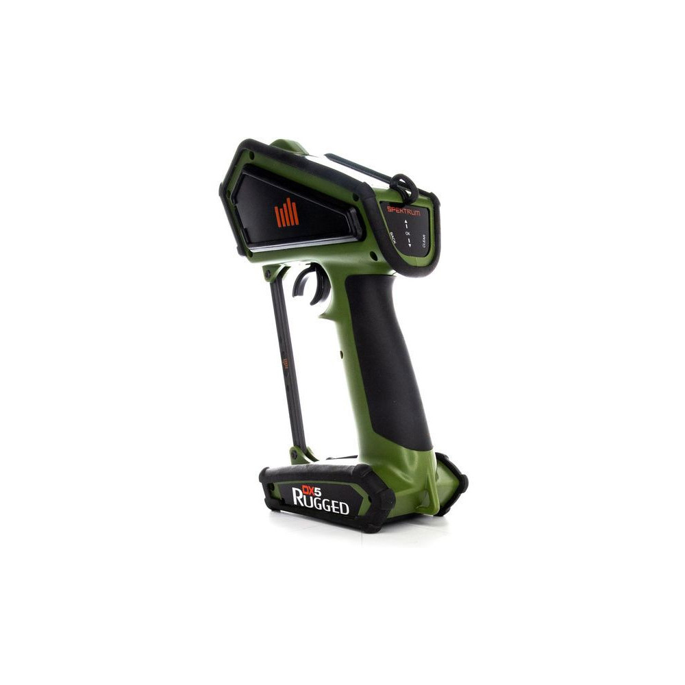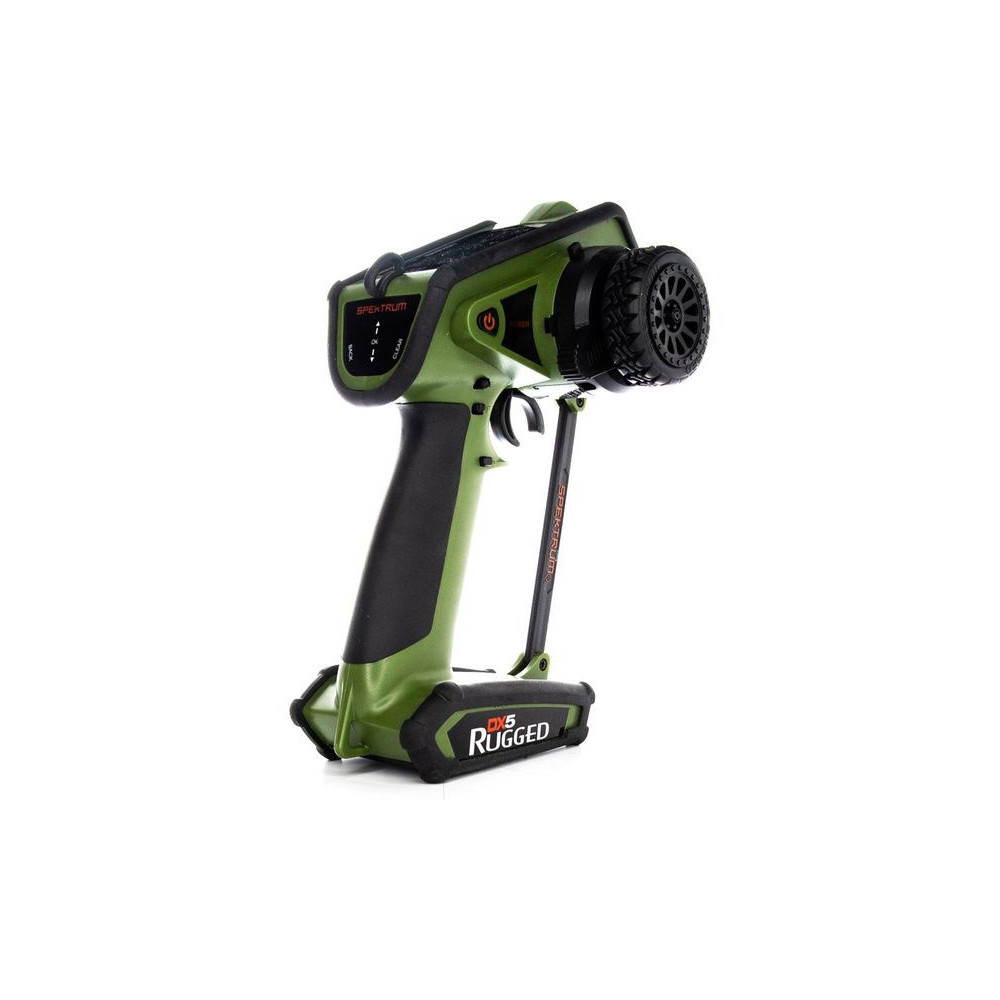 Van off-road RC modellje, és szüksége van egy stílusos megjelenésű jeladóra hozzá? A Spektrum DX5 Rugged egy ütésálló adóházzal rendelkezik, amely körös-körül puha tapintású díszlécekkel, belső antennával, karabiner gyűrűvel, masszív kormánykerékkel és hüvelykujjas kormánykarral rendelkezik.