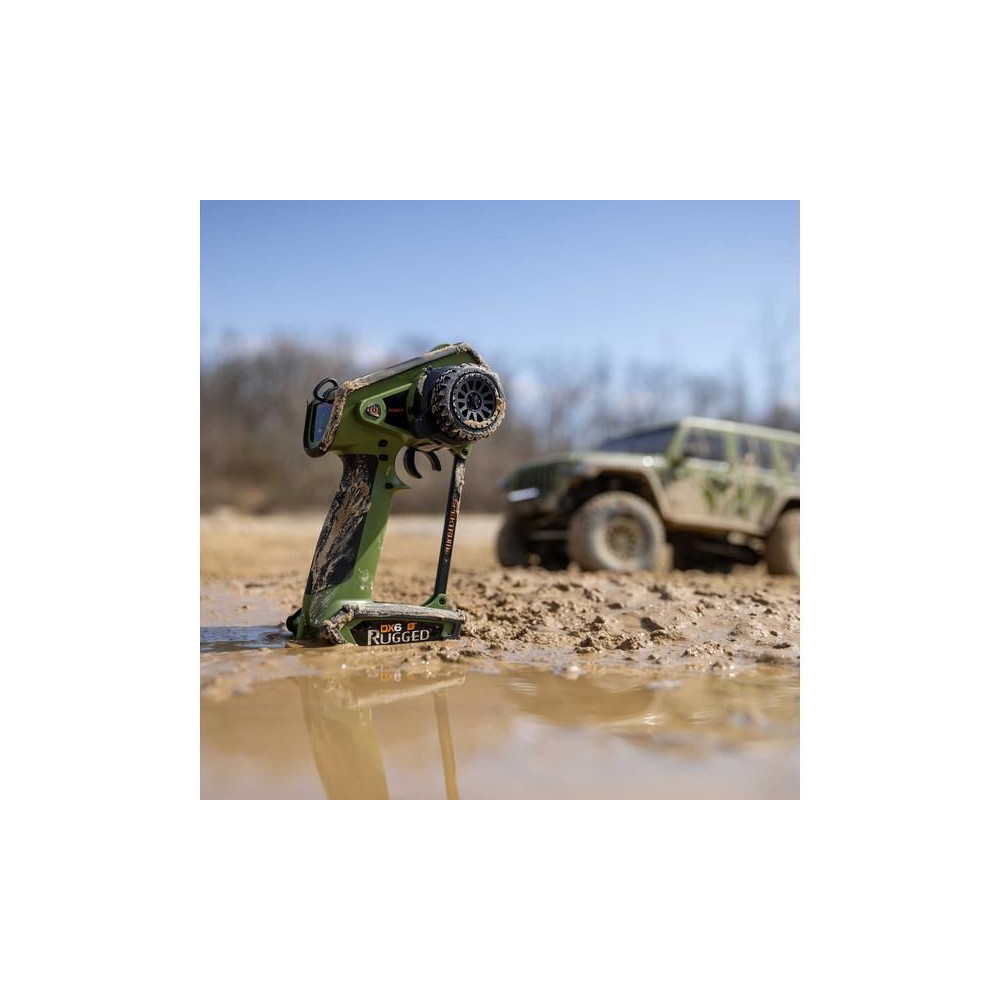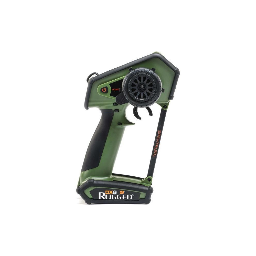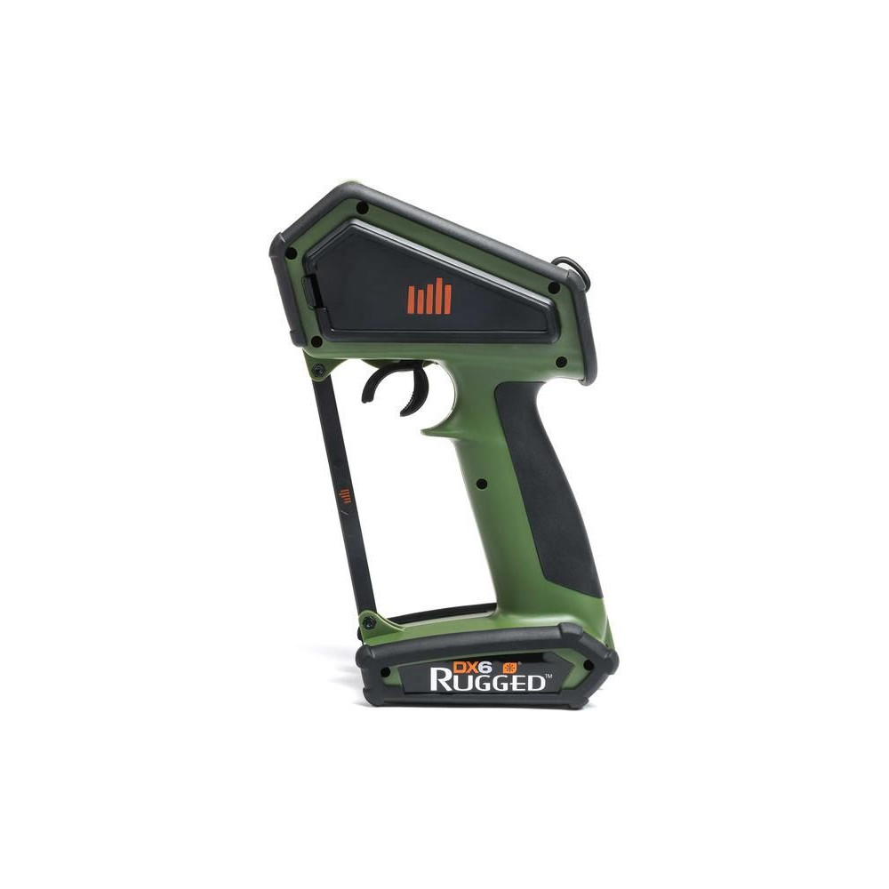 Az adó kialakítása a Spektrum adók kiváló ergonómiájára épül, további védelemmel az ütések, nedvesség és szennyeződések ellen. Az eredmény egy ütéscsillapító gumírozott peremkialakítás, amely körülveszi az adó vázát, olyan szintű védelmet teremtve, amelyet eddig még soha nem kínáltak kormánykerekes adóban. *A DX6 Rugged kézikönyv részletesen ismerteti a vízállóság korlátait.