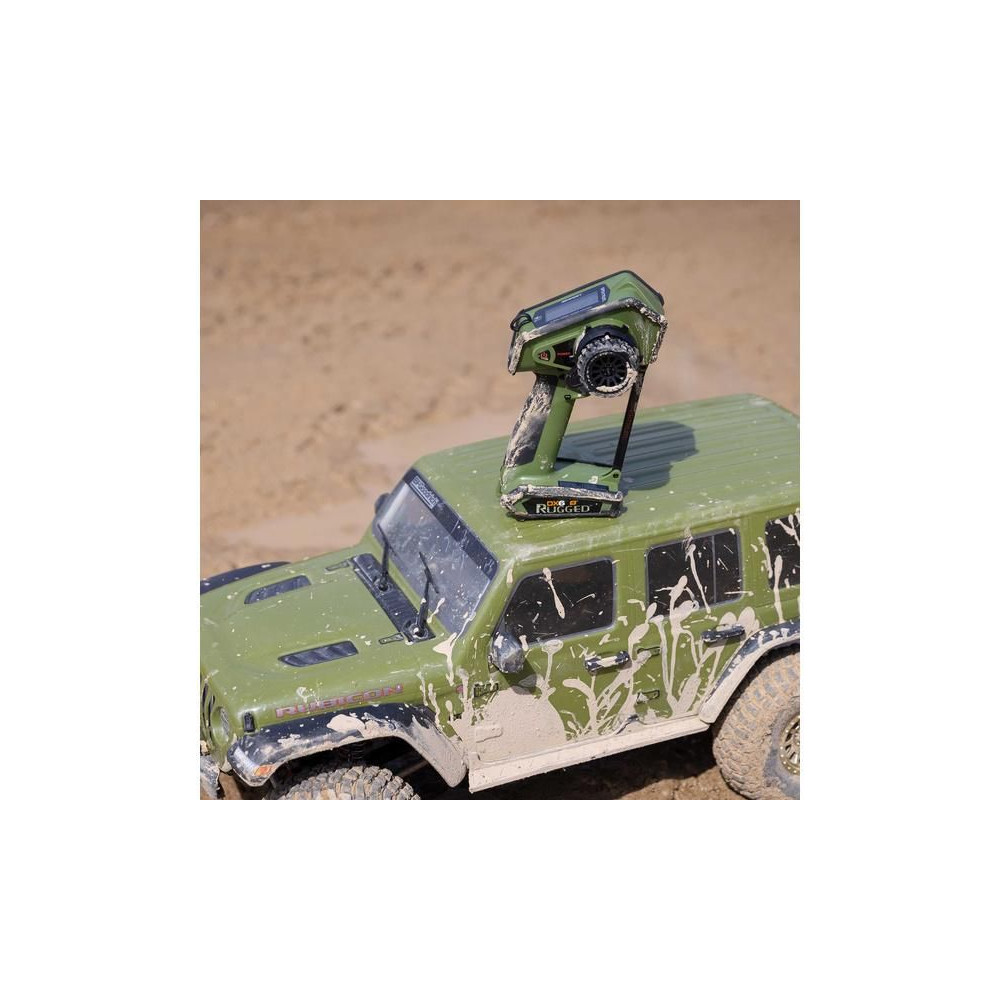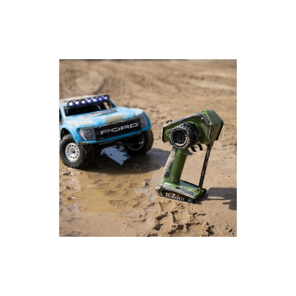 A Spektrum DX6 Rugged RC adó több segédkapcsolóval rendelkezik a fények, csörlők és egyéb funkciók számára. Az adó menüiben való navigáláshoz egy innovatív érintőképernyős vezérlőpanel szolgál, amely nagyobb ellenállást biztosít a nedvességgel és szennyeződéssel szemben. Egyszerűen csúsztassa az ujját a vezérlőpanelen, és a menüből való kiválasztáshoz érintse meg. Olvassa le az értékeket a könnyen olvasható, háttérvilágítású LCD-kijelzőn. A beépített telemetria (a modellnek telemetriai működésre alkalmas vevővel kell rendelkeznie) lehetővé teszi, hogy az olyan fontos adatok, mint a motor fordulatszáma, a jármű sebessége, az akkumulátor feszültsége és a hőmérséklet valós időben, közvetlenül az adón megjelenjenek. Ezenkívül az integrált USB-C port zökkenőmentes firmware-frissítést biztosít a zavartalan működés érdekében.