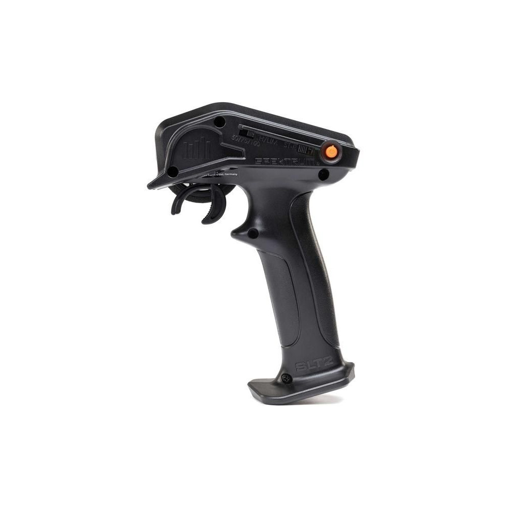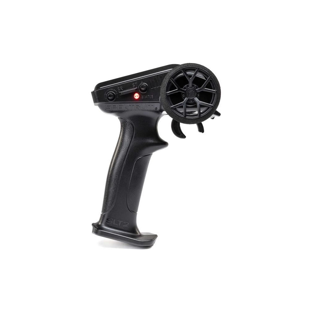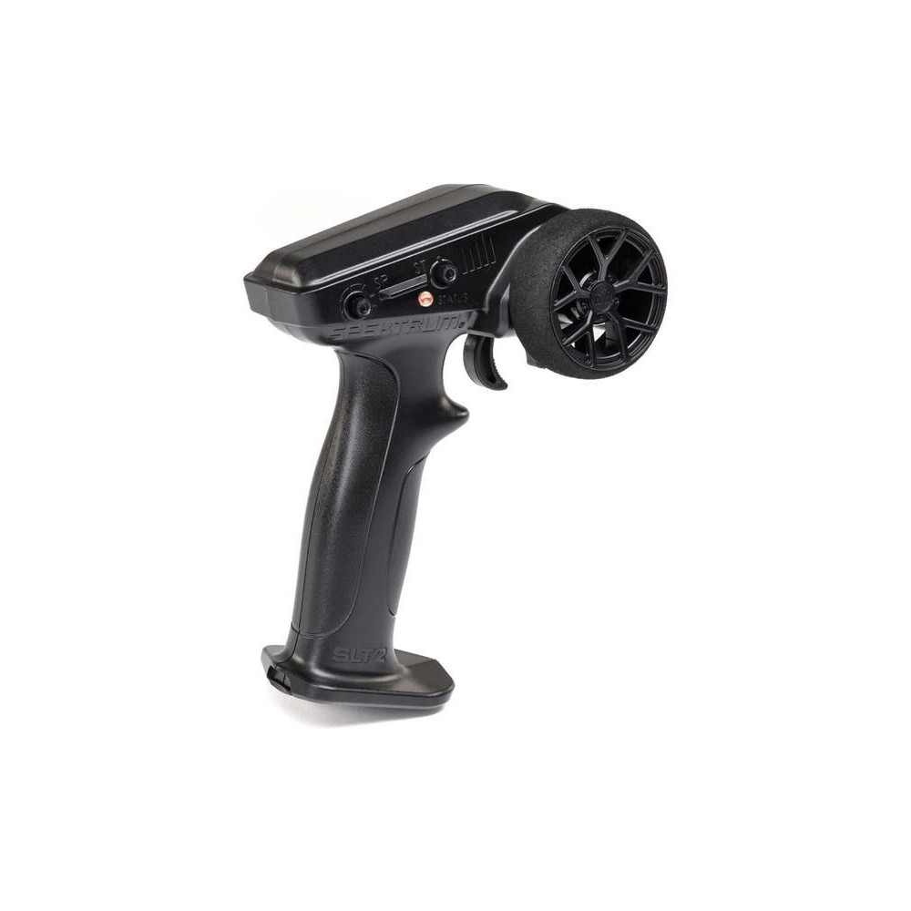 Egyszerű és megfizethető 2 csatornás Spektrum SLT2 2,4 GHz-es adó, kompatibilis az SLT protokollal és az FHSS modulációval. Gázhatár 50/75/100%, kormány trimmek, szervo irányváltás, kormány szervo útvonala. LED jelzi az adó akkumulátorának állapotát. DSC stabilizáció vezérlésének lehetősége.