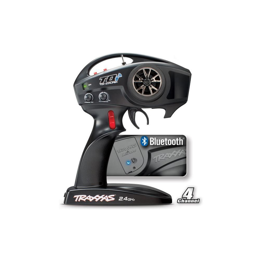 Négycsatornás Traxxas TQi RC készlet 2,4 GHz-es sávban telemetriával, új, forradalmi vezeték nélküli Bluetooth adatátvitellel Apple iOS operációs rendszerű (iPod, iPod, iPhone, ...) vagy Android (Samsung Galaxy S...) eszközökre. Így nemcsak az adó paramétereit állíthatja be egyértelműen, hanem valós időben láthatja az összes telemetriai adatot is. Ötcsatornás vevőegység Traxxas Stability Management stabilizációval