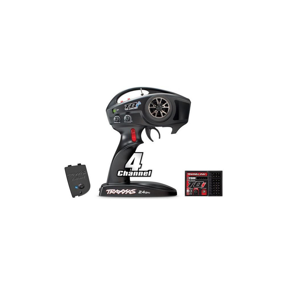 Traxxas négycsatornás TQi 2.4 GHz-es RC készlet telemetriával, forradalmi vezeték nélküli Bluetooth adatátvitellel , 30 modell memóriájával, ötcsatornás TSM vevővel.