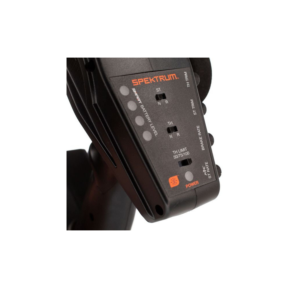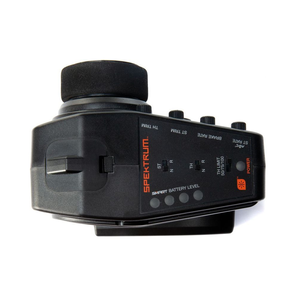 Az adóház jobb oldalán találhatók a kitérések, valamint a gáz- és kormánykerék trimm beállítására szolgáló gombok. A felső panelen középen találhatók a visszafordító kapcsolók, a gázpedál végálláskapcsoló és az adó AA elem állapotjelző LED-je. A bal oldalon a SMART telemetriarendszer jelző LED-jei találhatók. Az elülső oldalon található a főkapcsoló gomb.