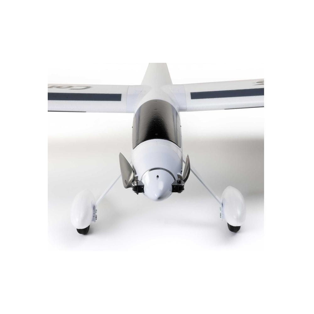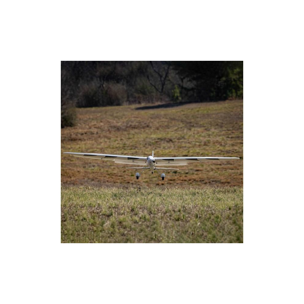 A rögzített, tömör futóművet, kerékborítással és homlokkerékkel sima felületen gurulhatsz, fel- és leszállhatsz. Vagy leszerelheted a futóművet, és kézi indítással is felszállhatsz, az automatikus kézi indítást segítő mód segítségével, végül pedig a fűre landolhatsz.