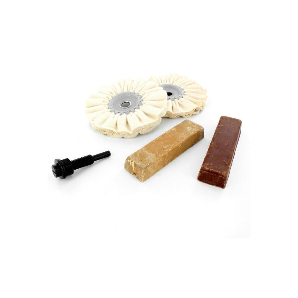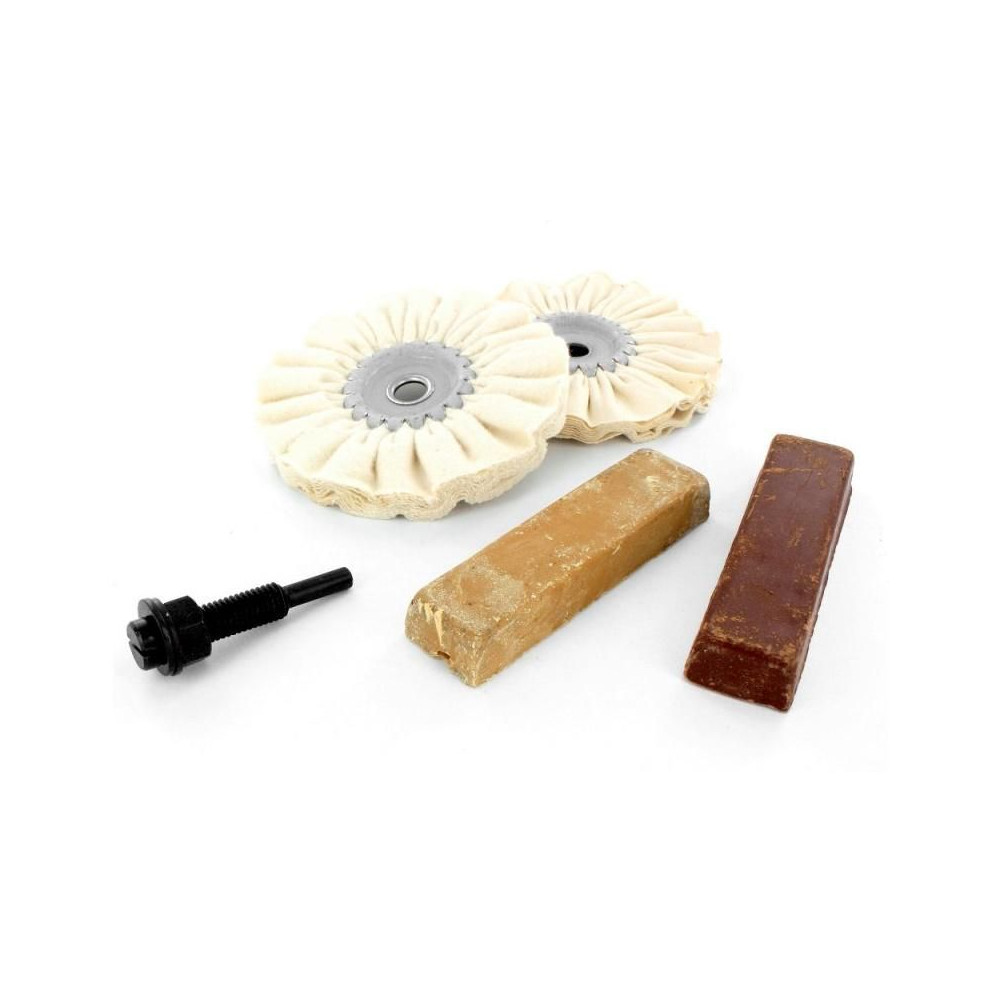 Műanyag polírozó készlet Policraft DIY polírozó készlet, 100 mm-es kemény korongot (előpolírozáshoz), 100 mm-es lágy korongot (végső polírozáshoz), szorítószárat (Unachec), barna pálcát a durva eltávolításhoz és világosbarna pálcát a magas fényű polírozáshoz. Ezzel a készlettel professzionális felületeket hozhat létre különböző típusú műanyagokon, laminátumon, bakeliteken stb. A szárat a beszerelt tárcsával hagyományos tokmányú kéziszerszámokhoz vagy Flexi meghajtókhoz való menethez való menethez rögzítheti.