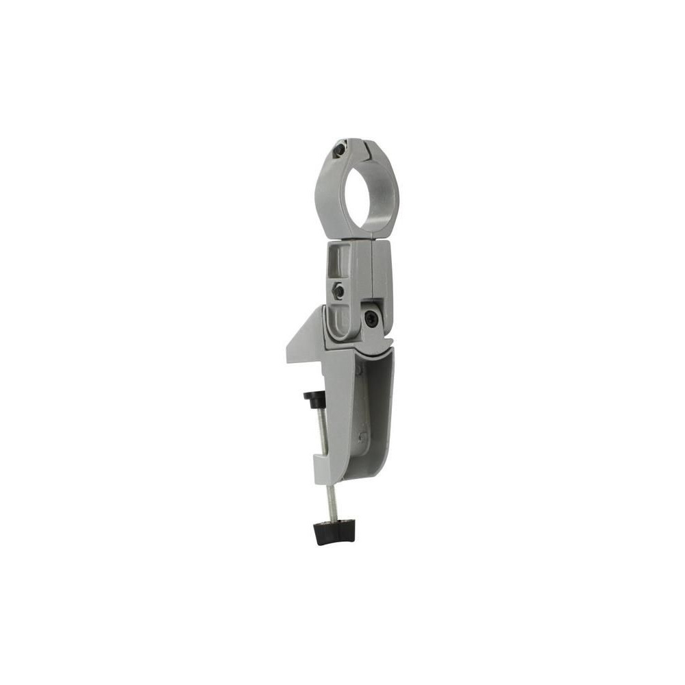 A Policraft Unive0silicon Clamp az elektromos fúrógép rögzítésére szolgál a munkapadhoz vagy az asztallaphoz. A 43 mm-es furattal rendelkező Euro bilincs vízszintesen 360°-ban forgatható. Ezen kívül a fej 180°-kal elfordul balról jobbra és 90°-kal előre. A munkalap maximális vastagsága 45 mm.