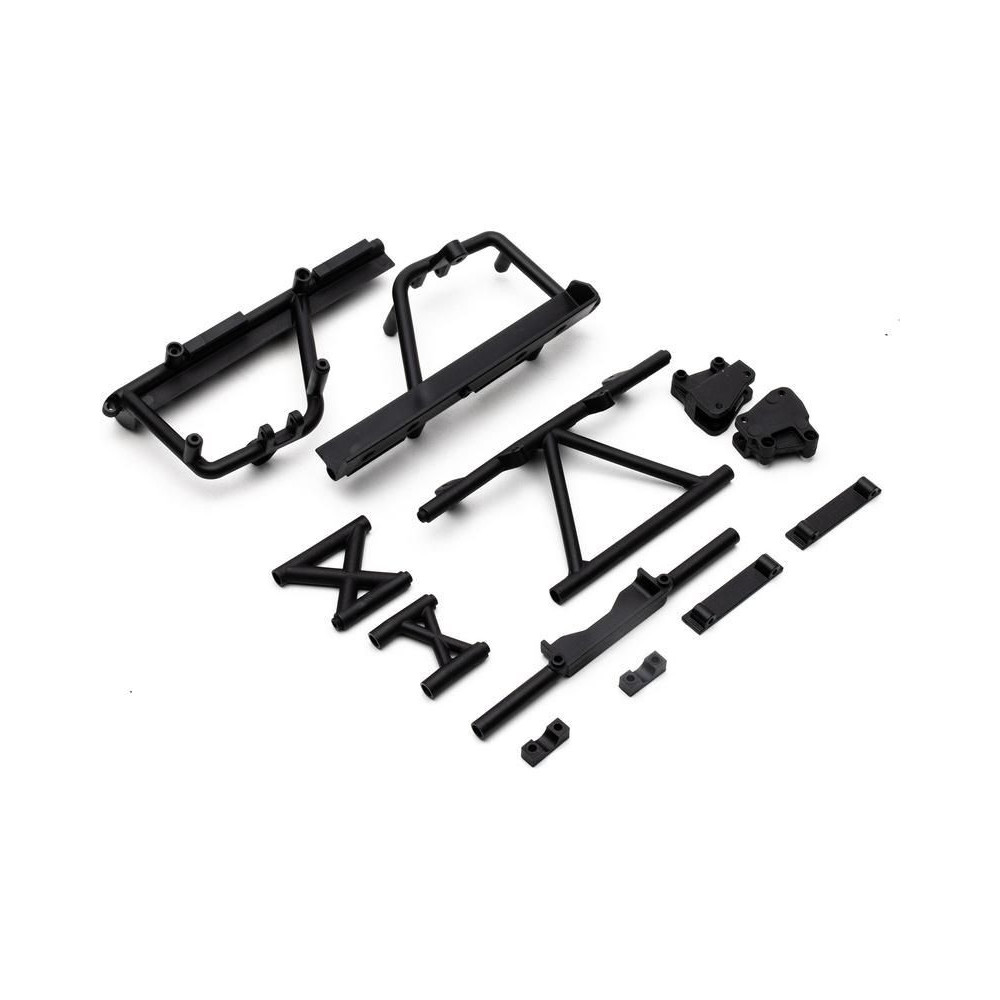 Pótalkatrész RC modellautóhoz Axial RBX10 Ryft 4WD: vázmerevítők, akkumulátor ágy fekete.