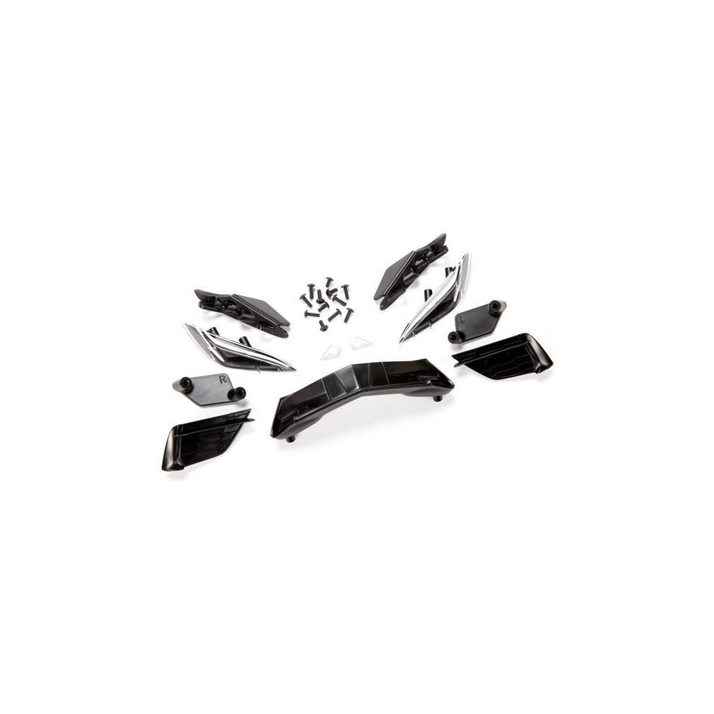 Traxxas első maszk Chevrolet Corvette Stingray-hez - pótalkatrész a Traxxas C8 Stingray 1:10 RTR-hez. Elülső maszk alkatrészek, fényszórók és rögzítő tartozékok.