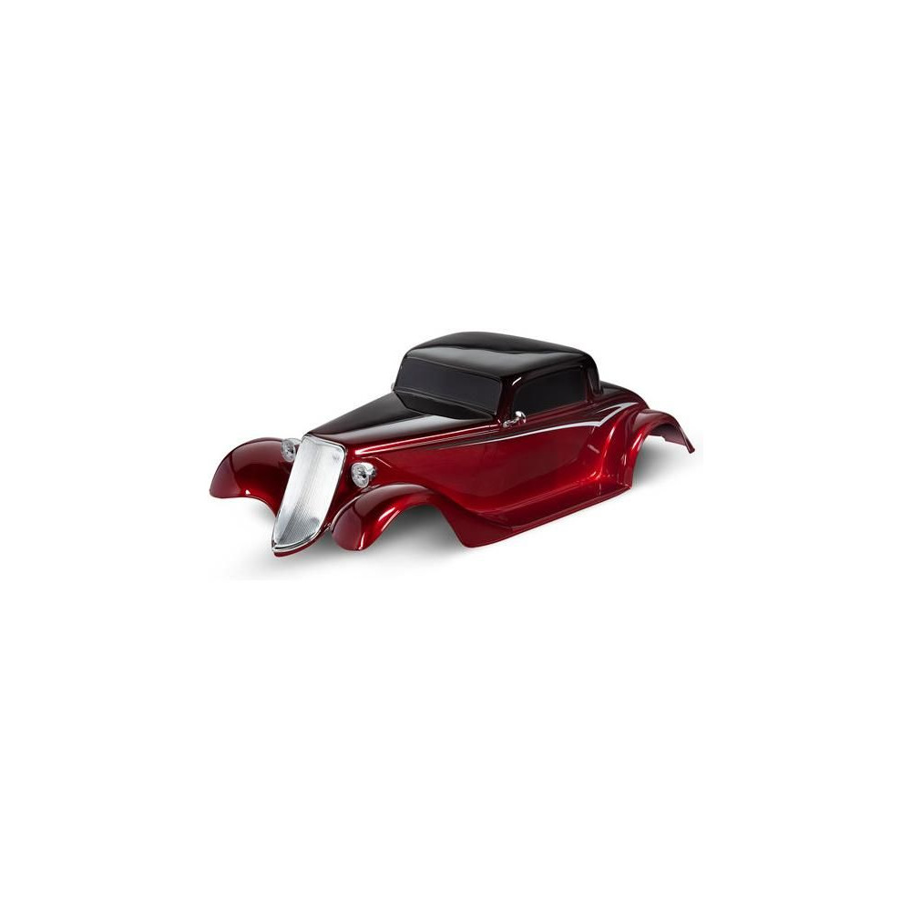 Traxxas Body Factory Five 33 Hot Rod Coupe piros - teljes karosszéria alkalmazott festéssel. Tartalmazza: első hűtőrács, tükrök, első és hátsó fényszórók, habbetét.