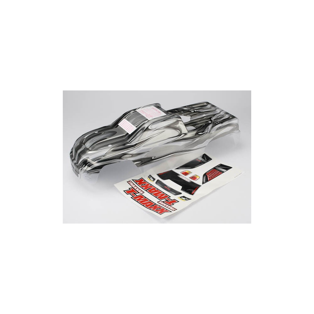 Előre festett (ProGraphix) lexán Traxxas T-Maxx 3.3 karosszéria (hosszabb tengelytávval) matricás ívvel.