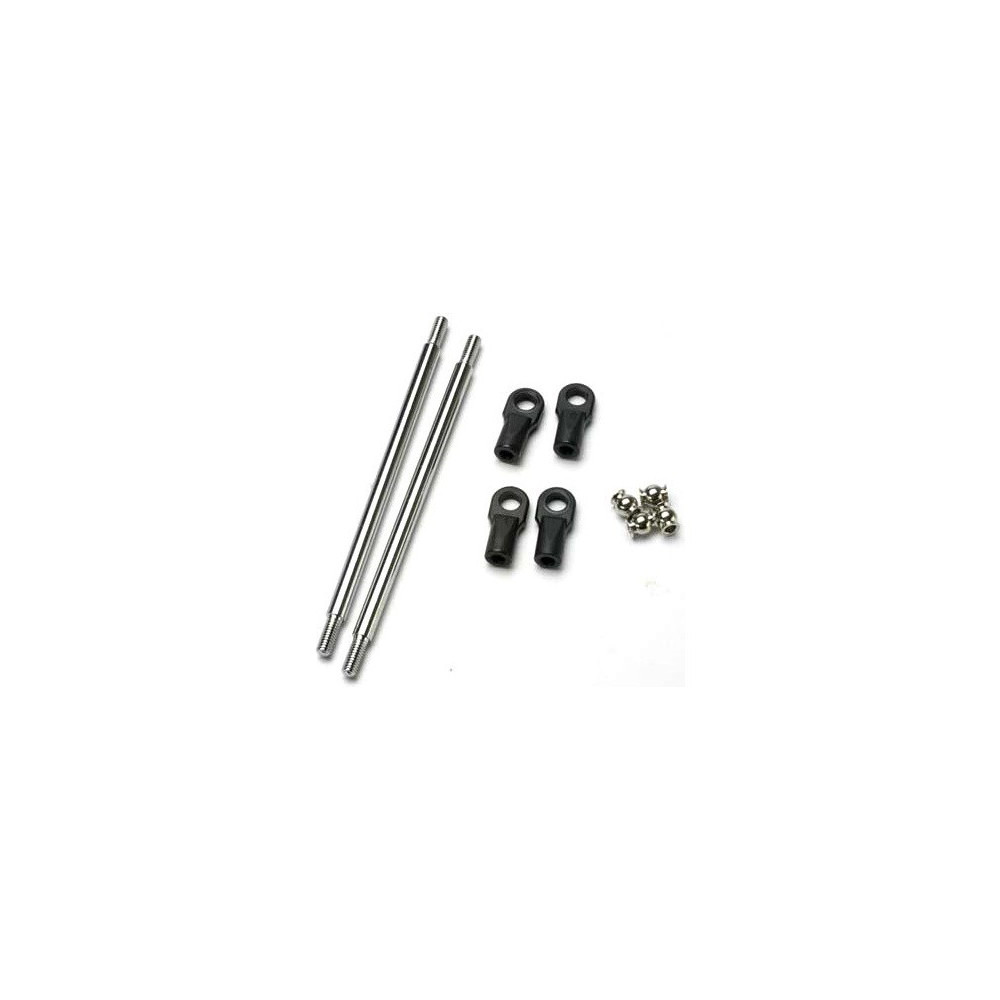RC autó stabilizátor rúd Revo, a csavarozott rúd tengelyeinek távolsága 115 mm, a rúd hossza 102 mm, a rúd átmérője 5 mm. A csomag 2 darabot tartalmaz.