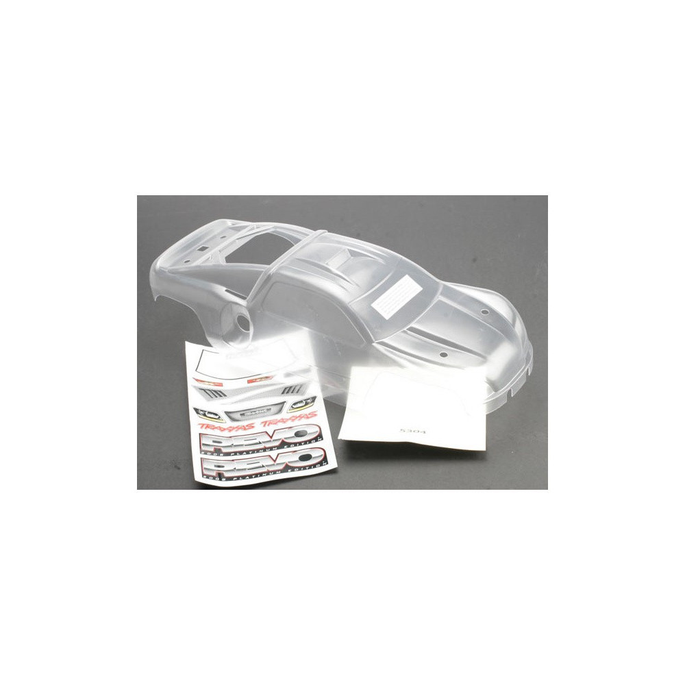 Traxxas áttetsző karosszéria, matricák: Revo Platinum