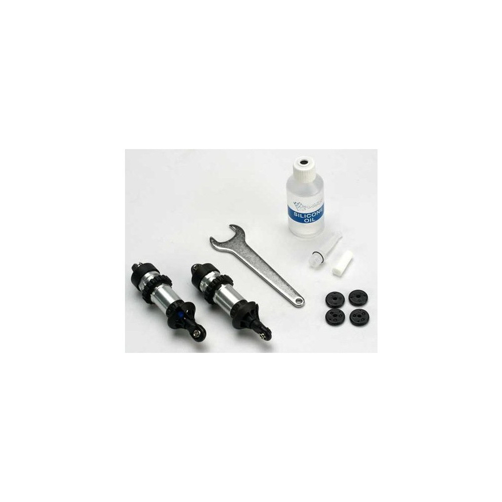 Traxxas GTR alumínium lengéscsillapító (2db elöl, 2db hátul) szilikonolajjal. A GTR kialakítású, menetes alumínium testtel rendelkezik, gyűrűvel a pontos előfeszítés beállításához. A krómozott tengelyek nagy tartóssággal és sima működéssel rendelkeznek. A lengéscsillapító belsejében csillapító gumitestek találhatóak a tökéletes csillapítás érdekében.