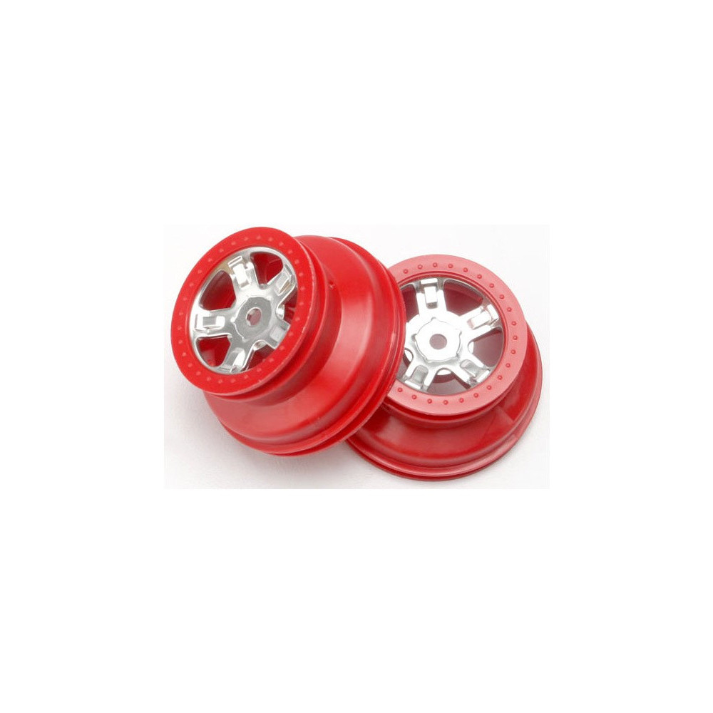 Univerzális SCT kerekek matt krómozott, piros felnivel. A tárcsa átmérője 36/46 mm (1,4/1,8"), szélessége 25 mm. Traxxas Slash 1:16 vagy Teton 1:18 méretarányhoz.