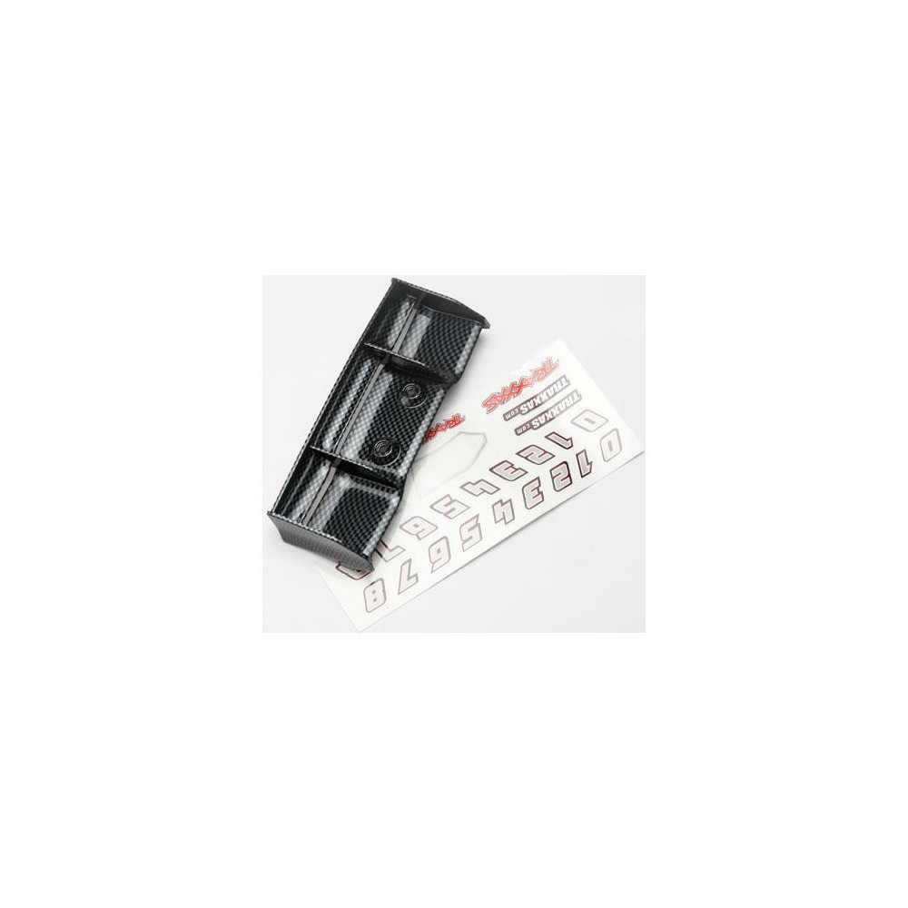 Szénszálas szárny matricákkal együtt RC modellautóhoz Traxxas E-Revo 1:16.
