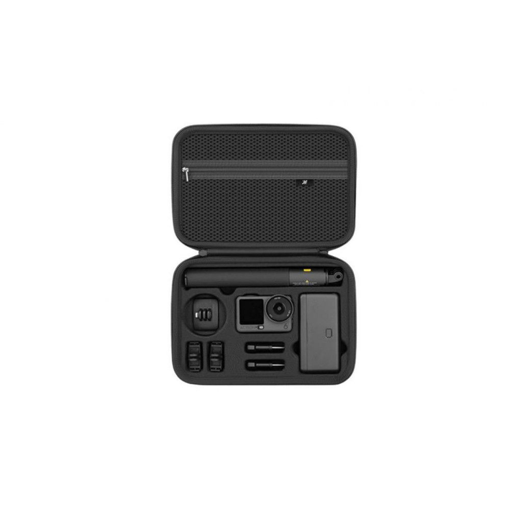 Praktikus védőtok az Osmo Action 6 Adventure Combo fényképezőgéphez, fekete színben. PU és lycra kombinációjából készült, amely megvédi a berendezéseket a sérülésektől, portól és nedvességtől. A tok kompakt méretei 27,5 × 19,5 × 5,5 cm, könnyű, mindössze 393 g, és állítható vállpánttal van felszerelve, hogy kényelmesen hordhassa útközben és szabadtéri tevékenységek során.