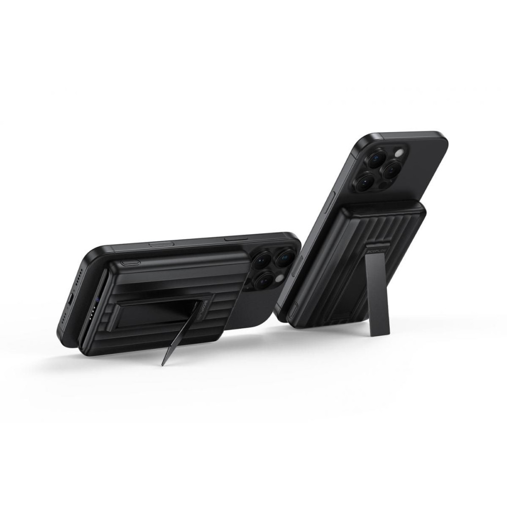 A mobiltelefon szilárd, N52 mágnesekkel rögzített, összecsukható állványa lehetővé teszi az EcoFlow RAPID Mag Power Bank 10K kényelmes használatát videónézés vagy üzenetek olvasása közben a telefon kijelzőjén.
