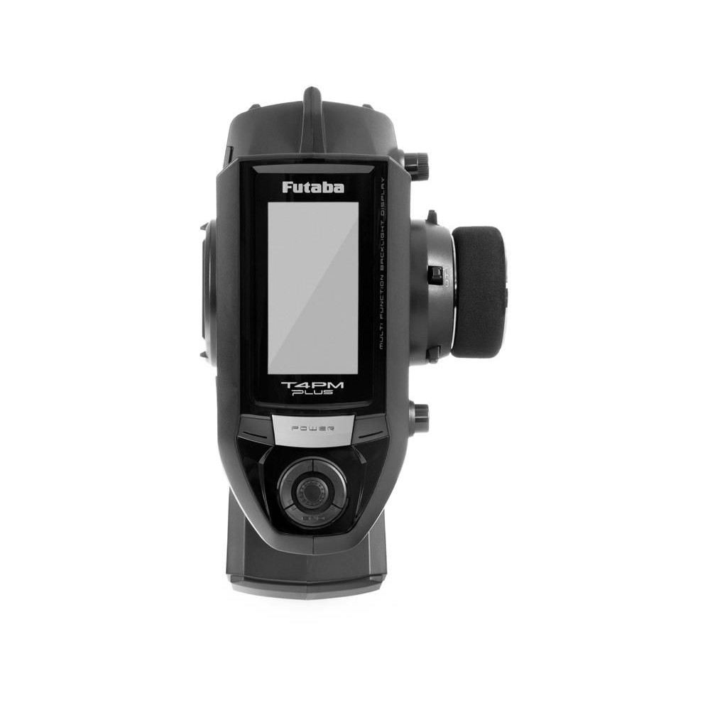A klasszikus kormánykerék-kialakítású, kézbe tökéletesen illeszkedő fogantyúval ellátott T4PM plus adó kormánykerék-vezérlővel, gázkarral, két nyomógombos kapcsolóval, egy forgókapcsolóval és öt digitális trimmel (3 a kormánykerék körül, 2 a fogantyún) van felszerelve. A programozáshoz három gomb és egy multifunkcionális joystick szolgál; az intuitív menüben való könnyű eligazodást a nagyméretű, háttérvilágítású LCD kijelző biztosítja. A T4PM 40 modell memóriájával és számos fejlett programfunkcióval rendelkezik az általános és speciális autómodellekhez - pl. az első és hátsó kerekek független vezérlése és meghajtása (2 szabályozóval) lánctalpas autókhoz, kétkörös fékek a nagy 1:5-ös modellekhez, giroszkóp a driftelésekhez, ABS, kipörgésgátló, keverék a tartálykocsikhoz stb.