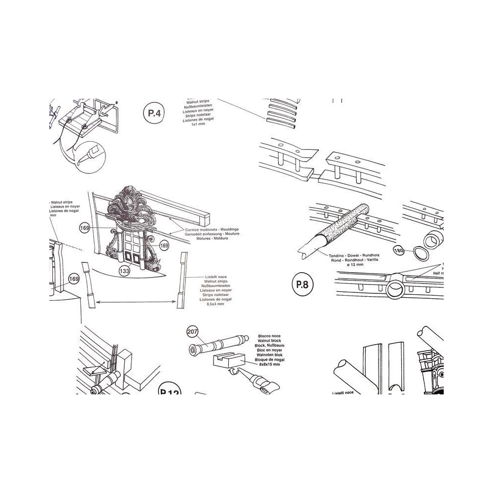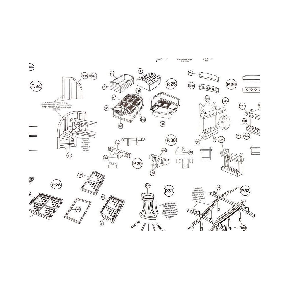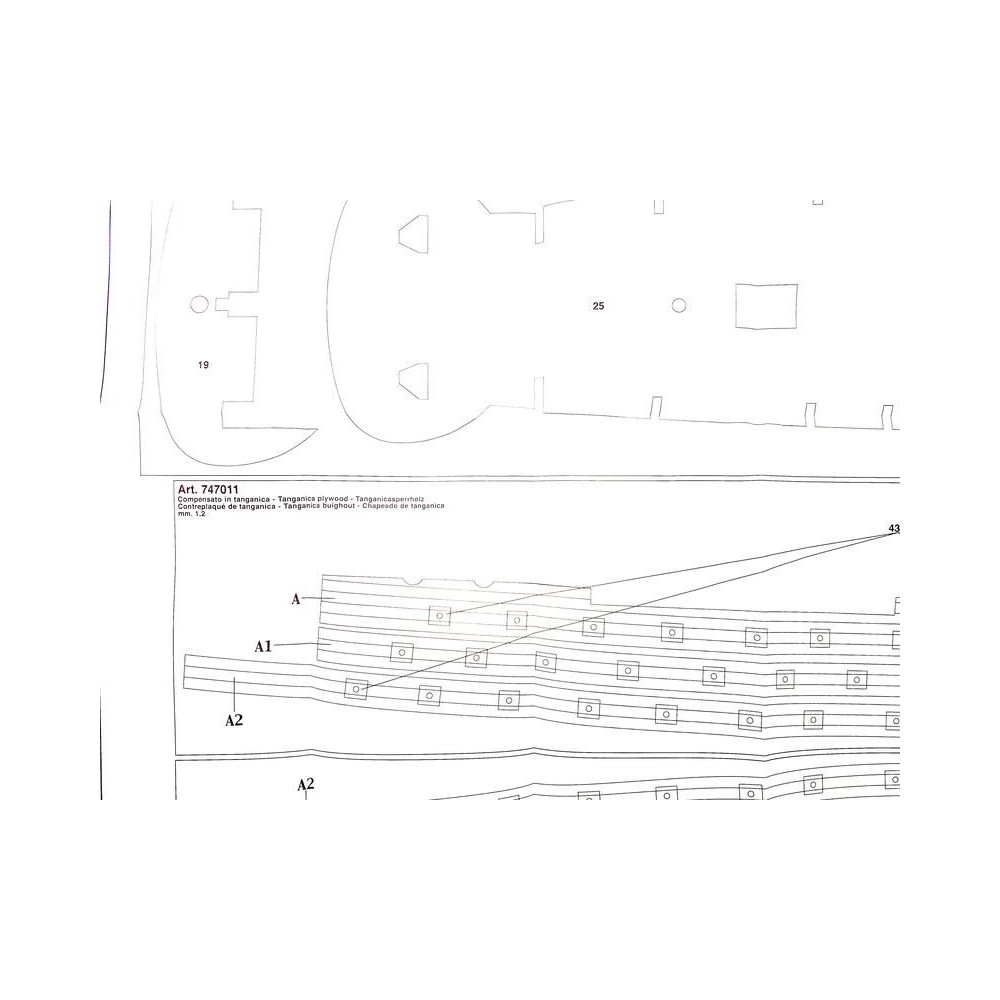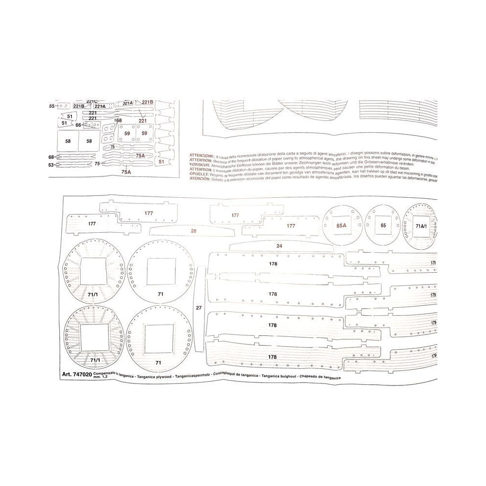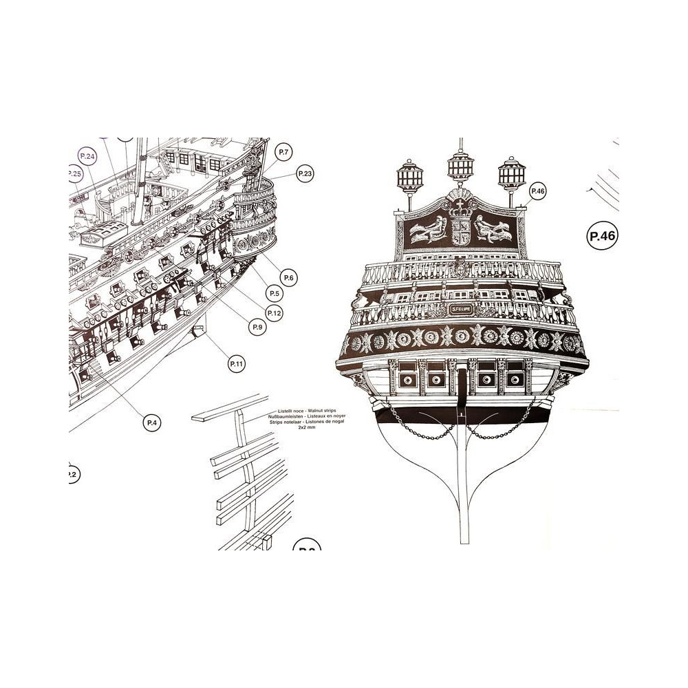 Ajánlott tartozékok a Mantua Model San Felipe 1:75 készlethez: gravírozott alkatrészek fa.