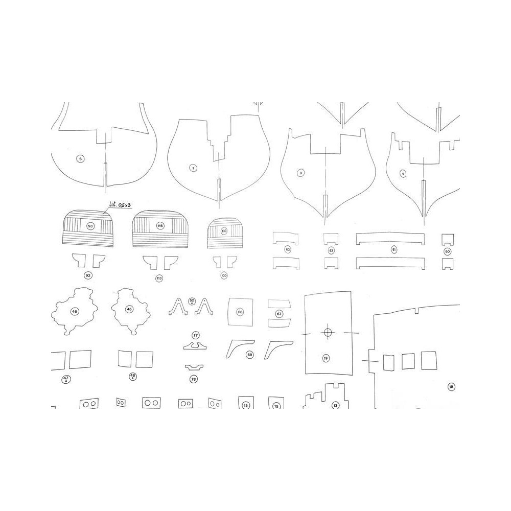 Ajánlott tartozékok a Mantua Model Peregrine Galley 1:60 készlethez: gravírozott fa alkatrészek.
