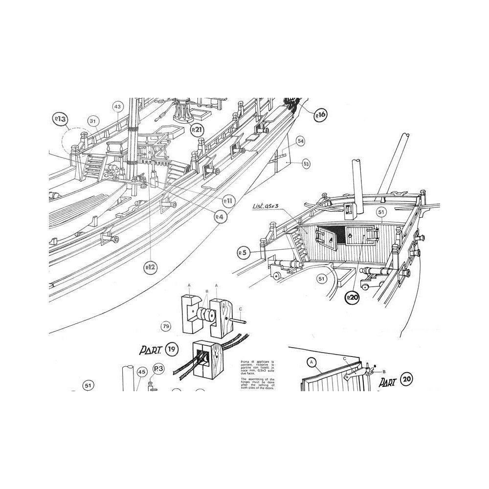 Mantua Model gravírozott fa alkatrészek: Peregrine Gálya